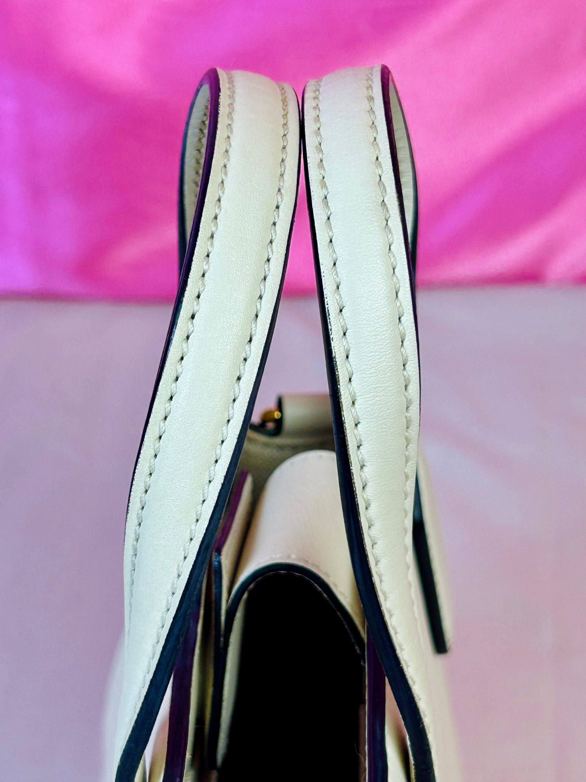 💜 Description: Leather is in excellent shape with no cracks or tears. Very small discoloration noted on the bottom corners. Glazing and piping are in excellent condition. Leather handles are in excellent condition with minimal wear. Chapes are strong and intact. Interior and interior pockets are very clean with minimal signs of use. Comes with a generic strap, allowing it to be worn as either a handbag or a shoulder bag. Magnetic clasp functions properly.