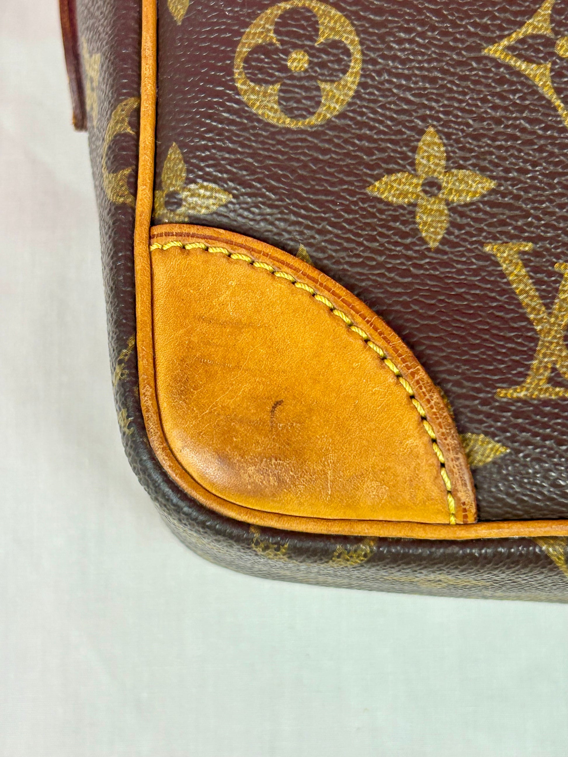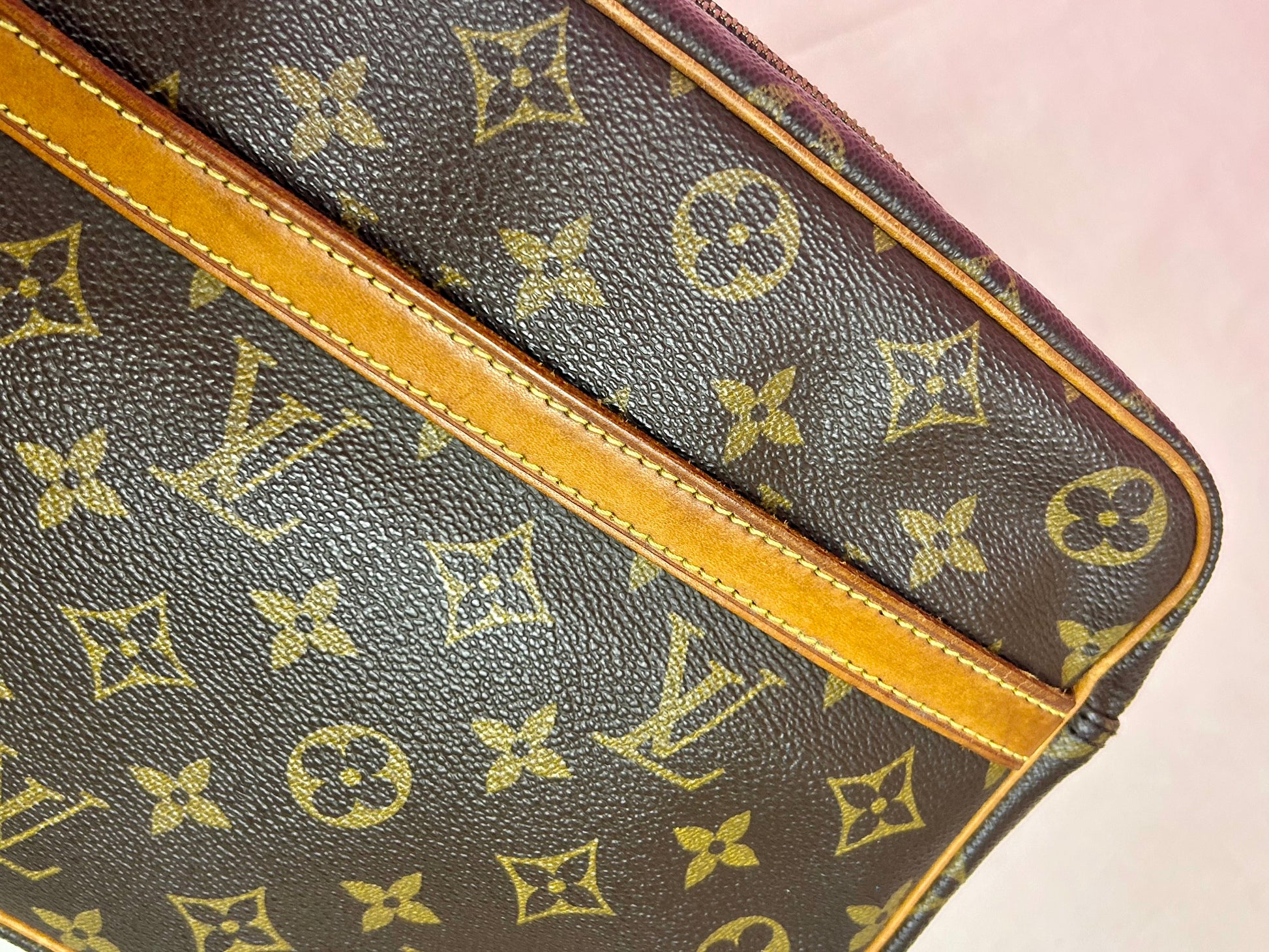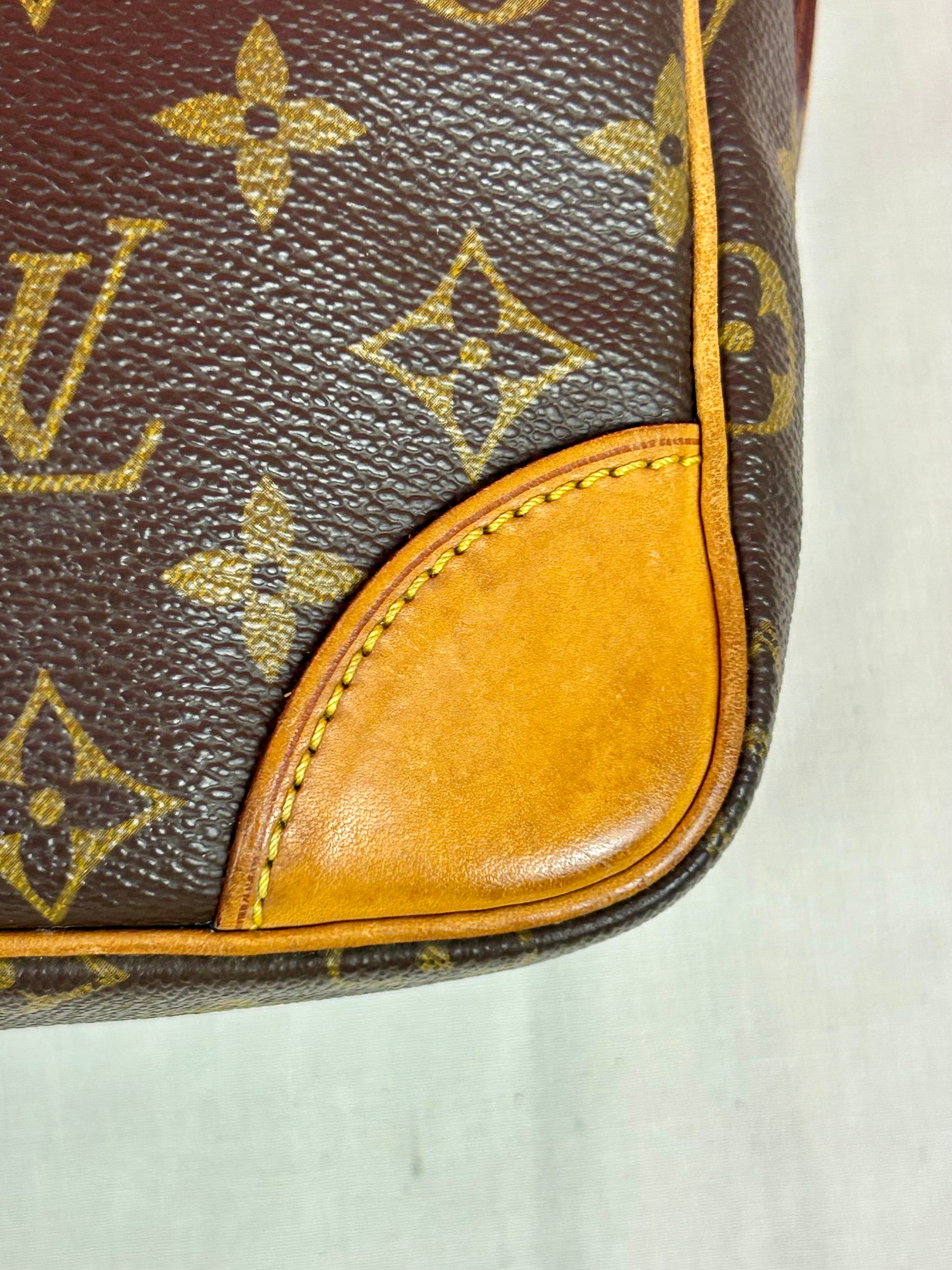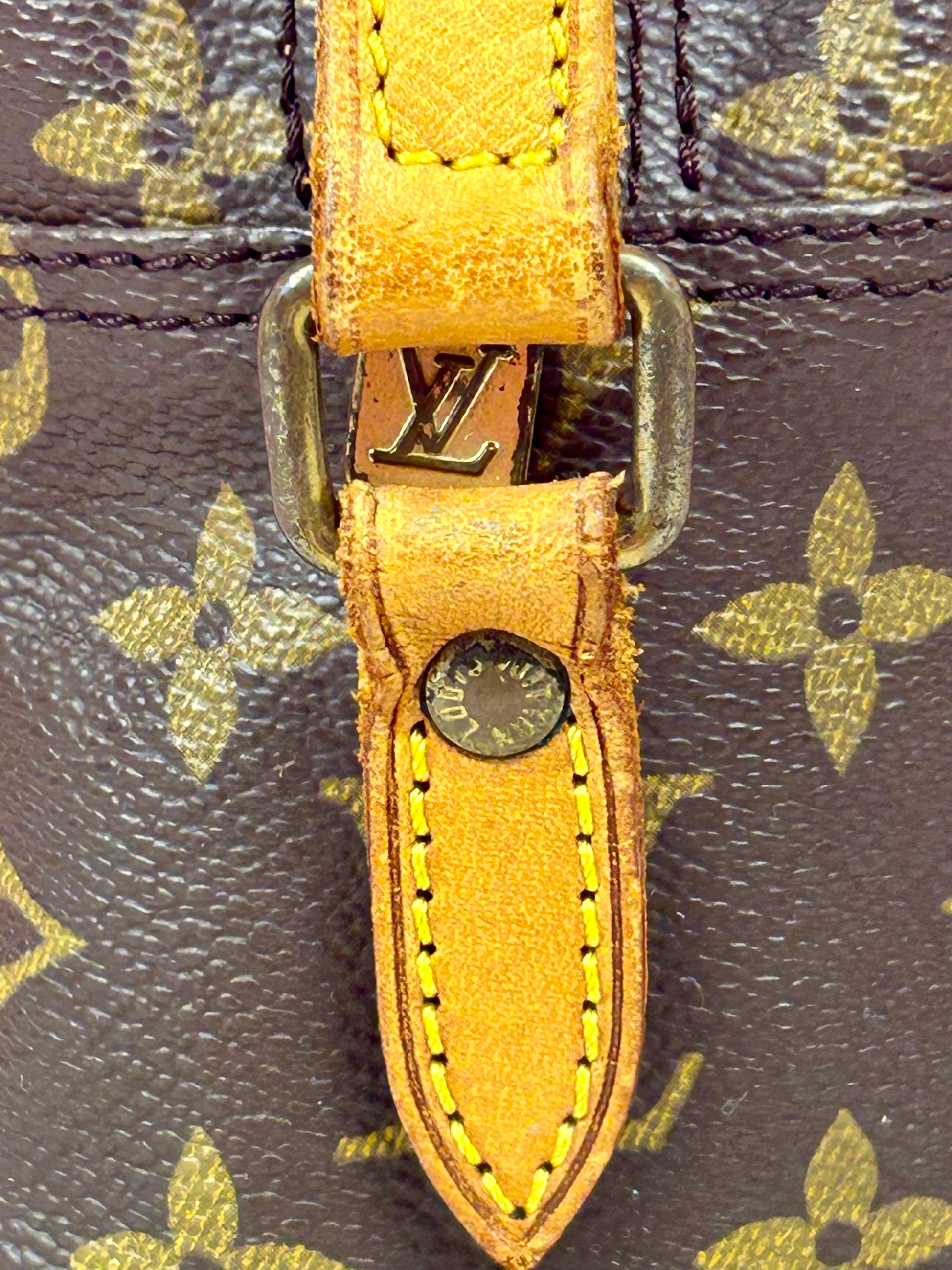 š Description: The Trocadero 30 is the largest of this model. Canvas is in beautiful condition with no cracks or tears. Leather piping is in great condition. Normal wear on the leather trim on the front and some marking on the corner leather tabs. Interior is clean with some wear and markings. Previous owner replaced the lining of interor and exterior pockets, they are clean and not sticky. Zipper pulls smoothly. Leather strap is in good condition with no cracks or tears. Chapes are strong. Hardware is shiny. No foul odors noted.