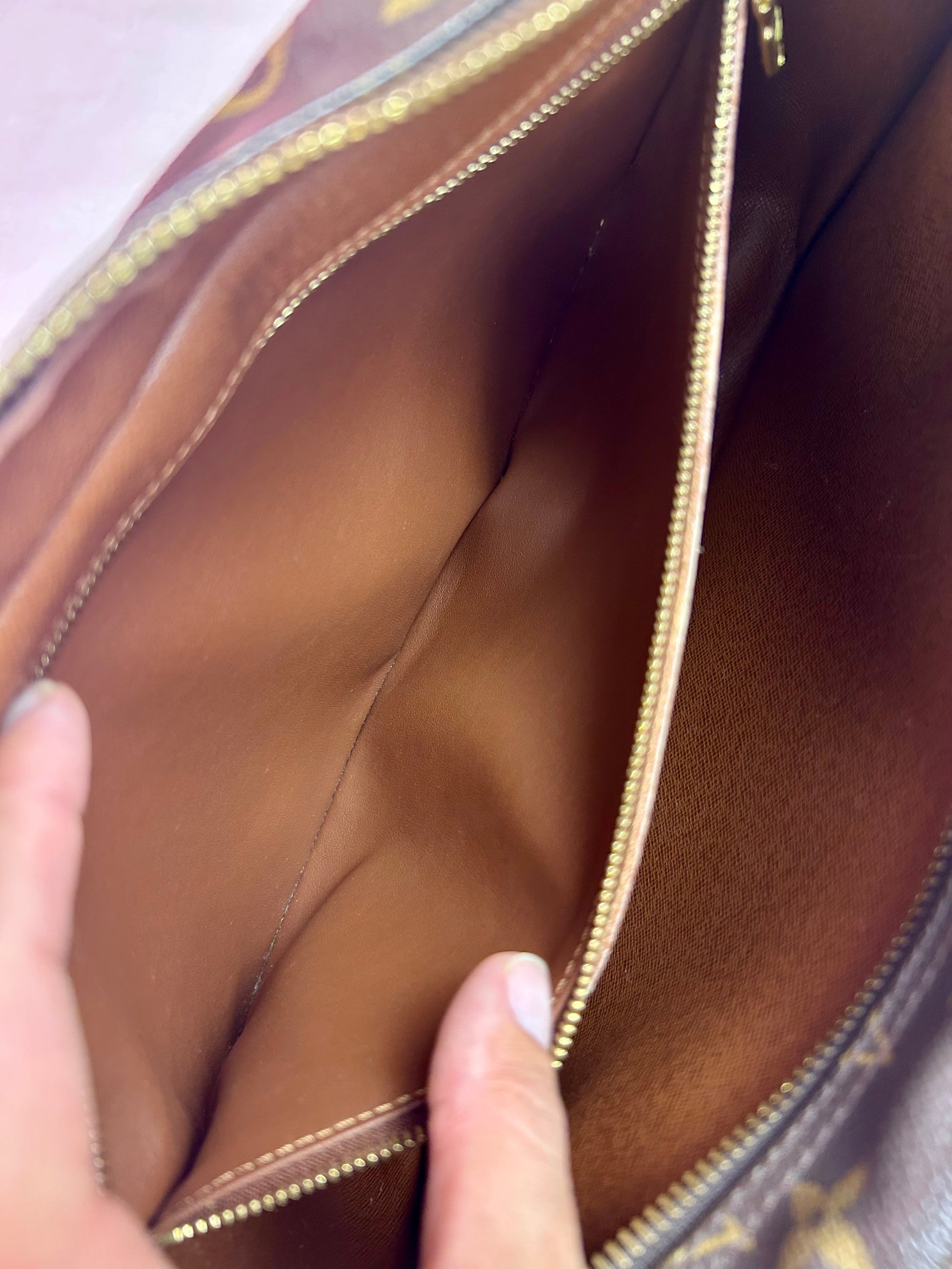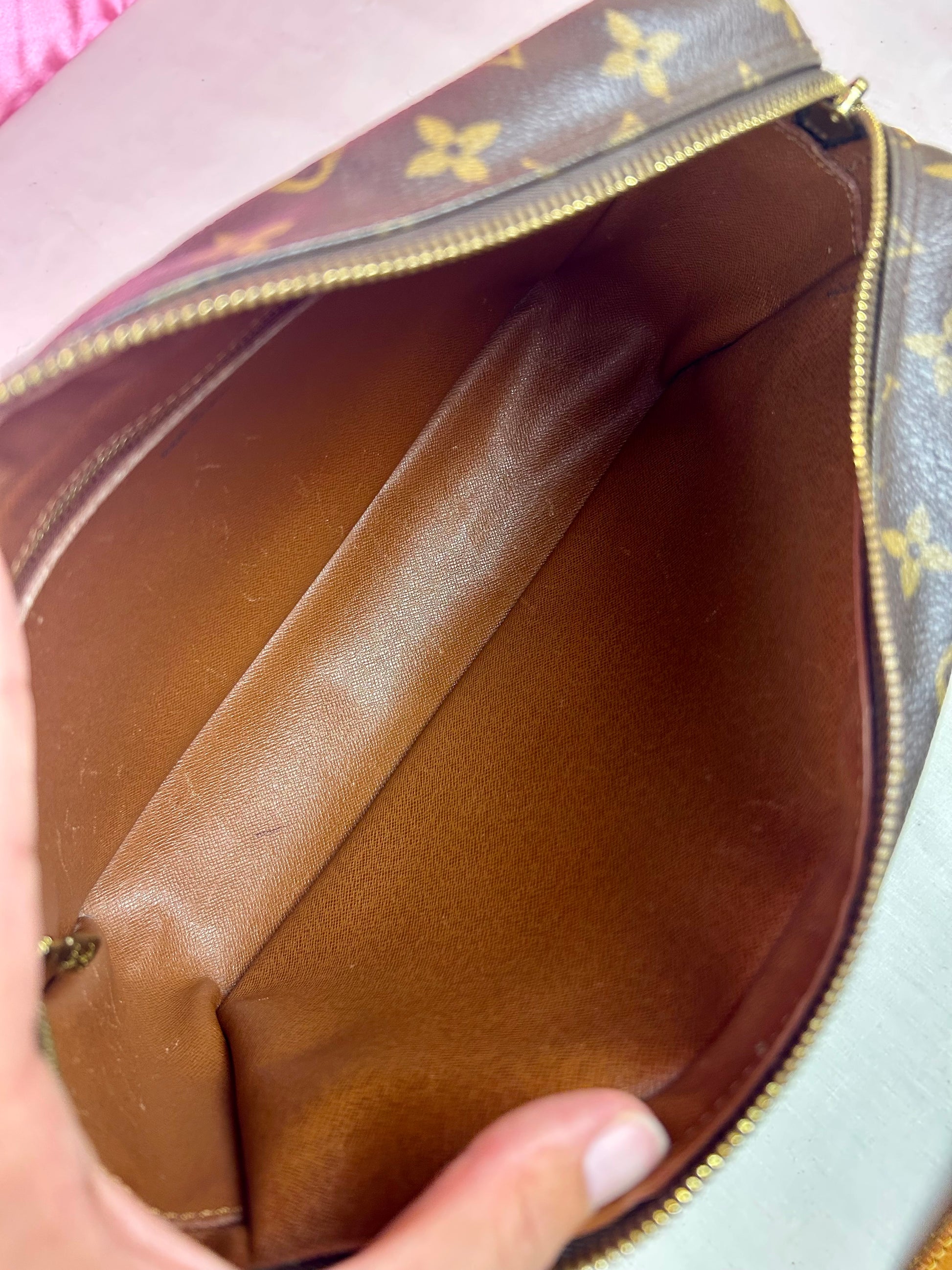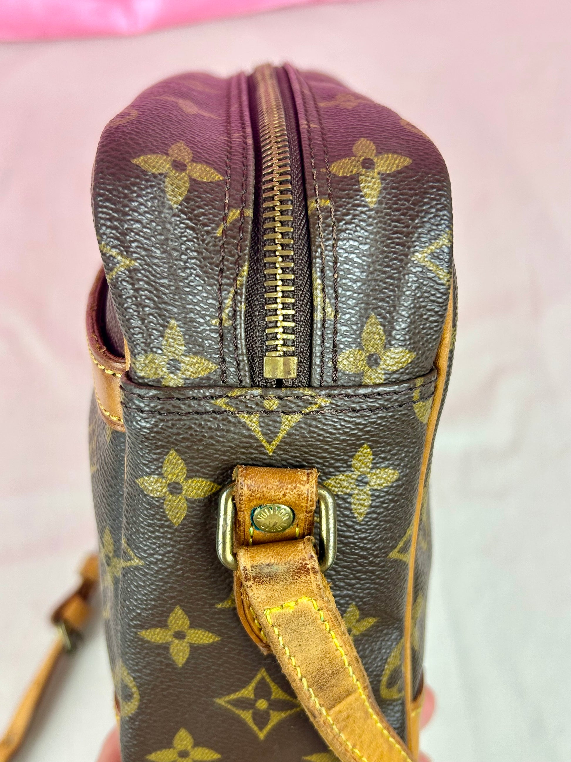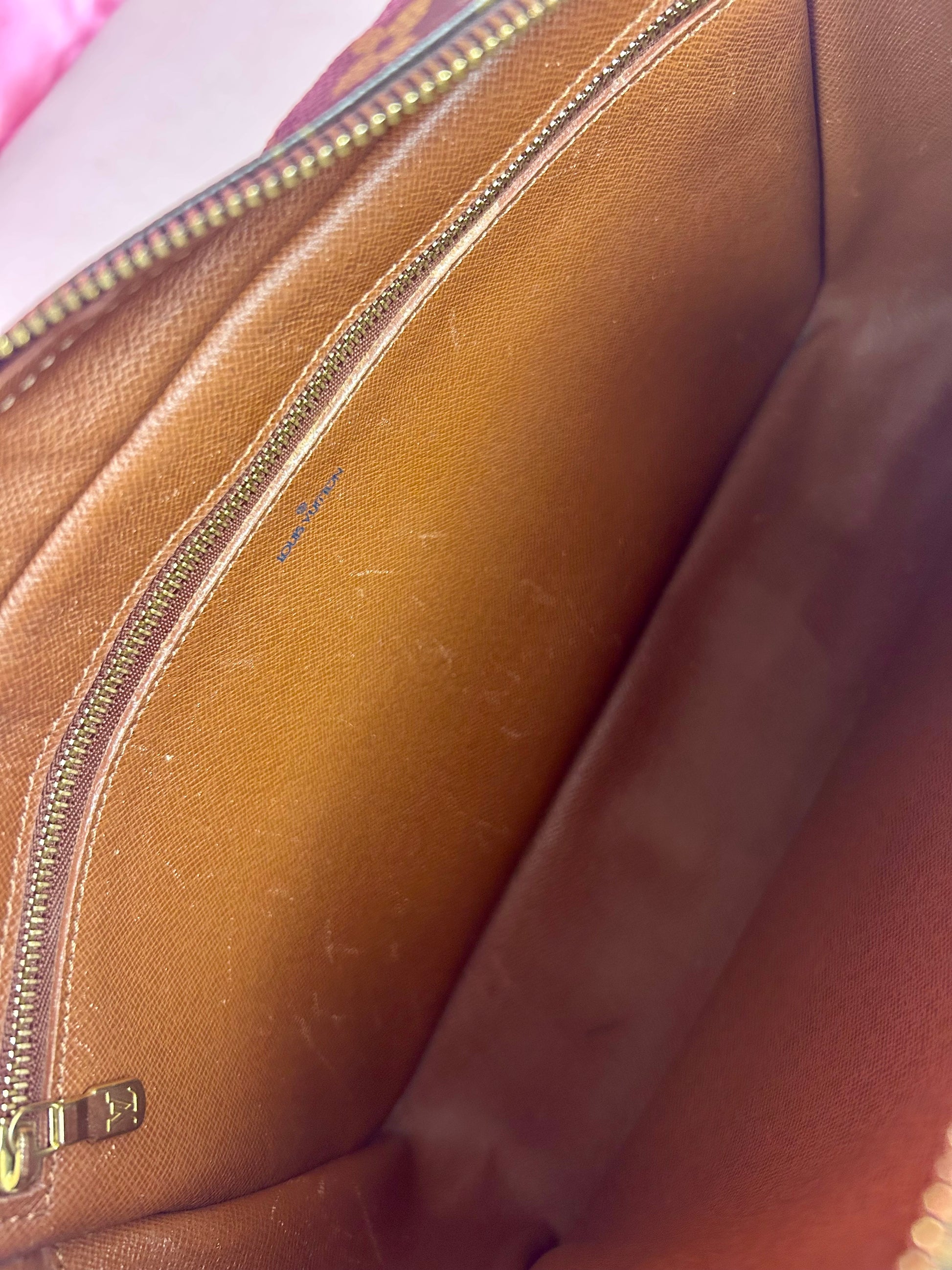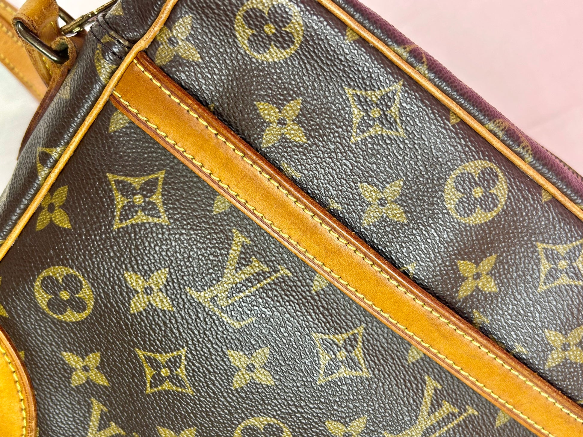 š Description: The Trocadero 30 is the largest of this model. Canvas is in beautiful condition with no cracks or tears. Leather piping is in great condition. Normal wear on the leather trim on the front and some marking on the corner leather tabs. Interior is clean with some wear and markings. Previous owner replaced the lining of interor and exterior pockets, they are clean and not sticky. Zipper pulls smoothly. Leather strap is in good condition with no cracks or tears. Chapes are strong. Hardware is shiny. No foul odors noted.