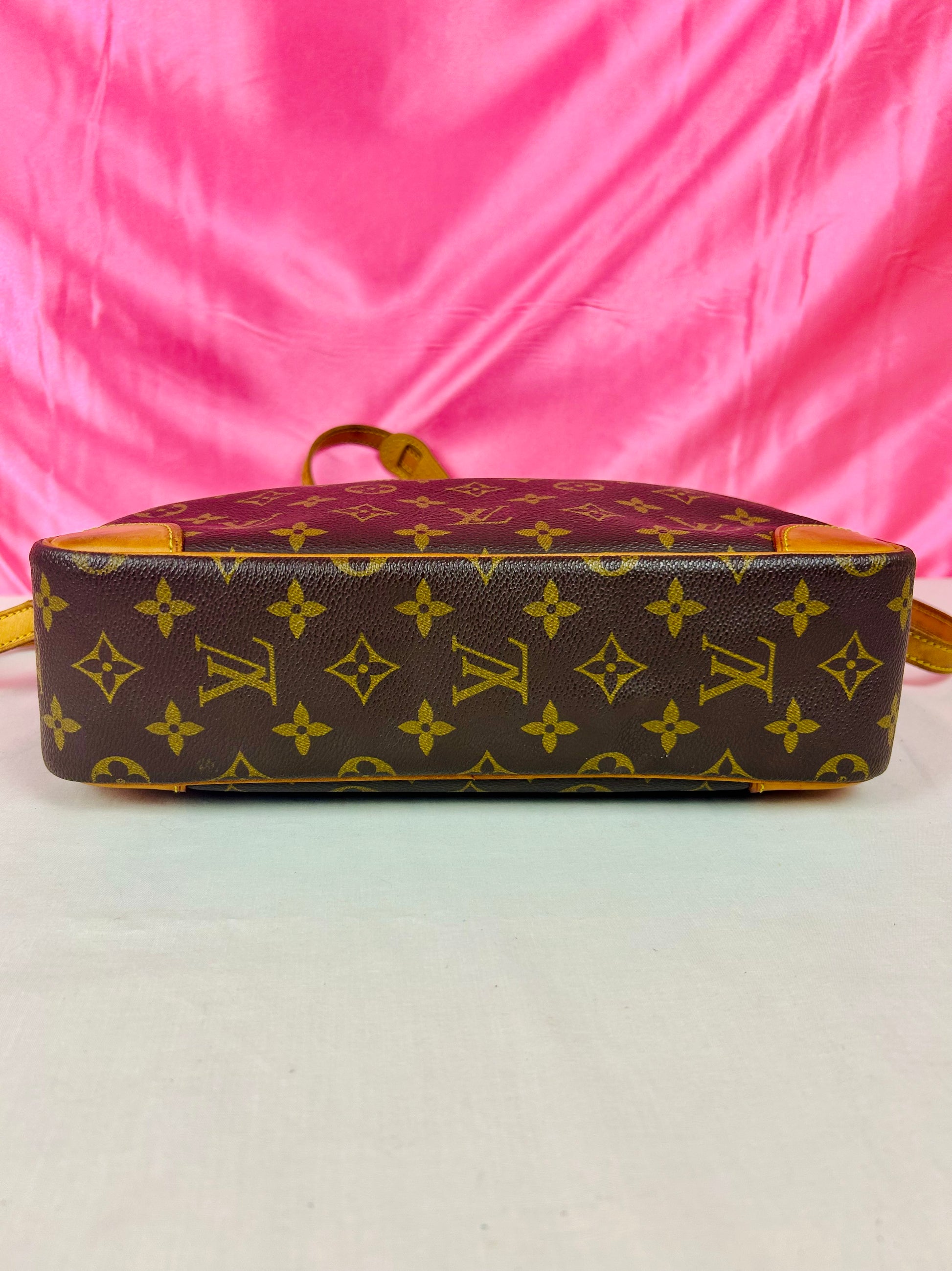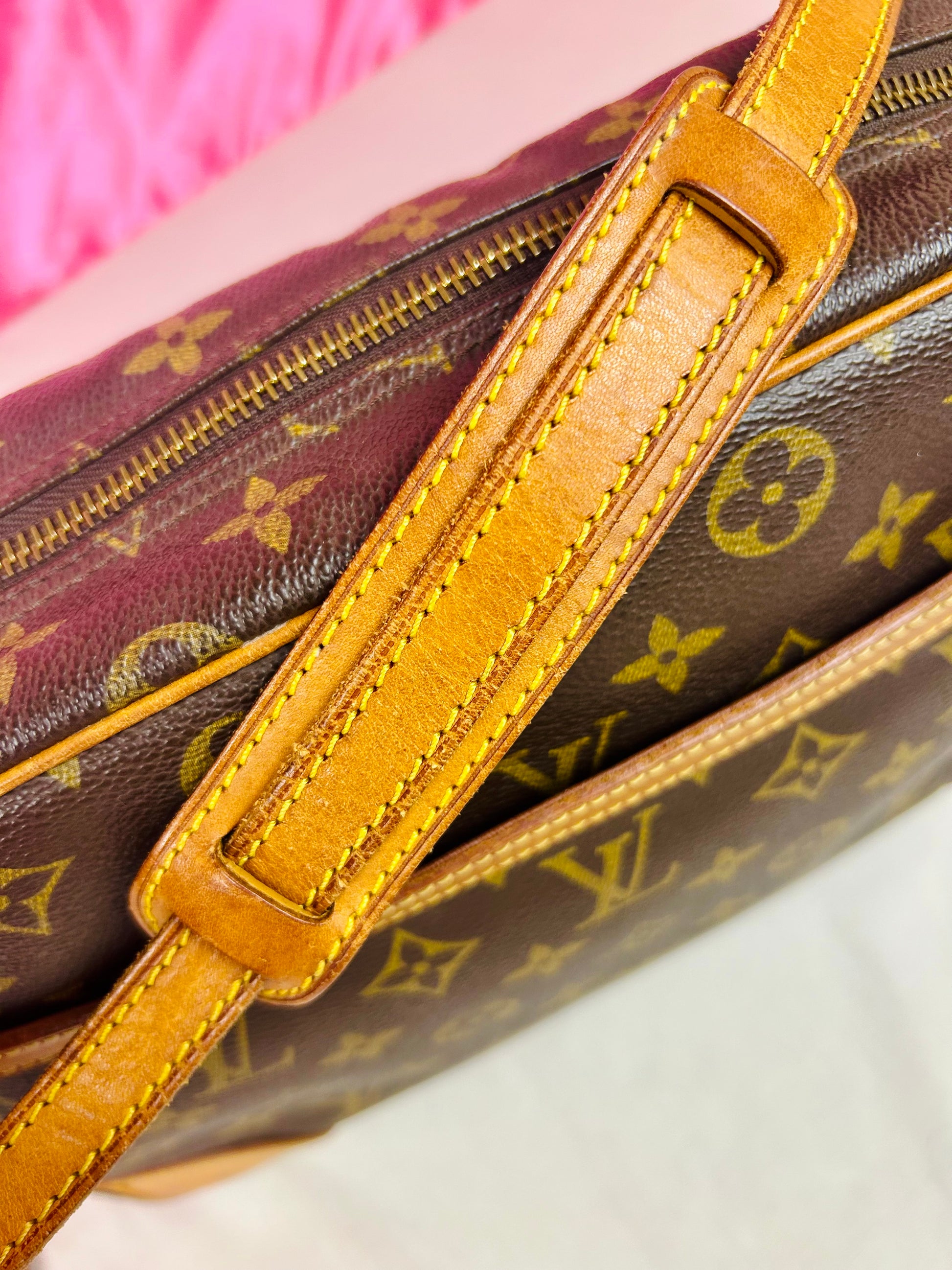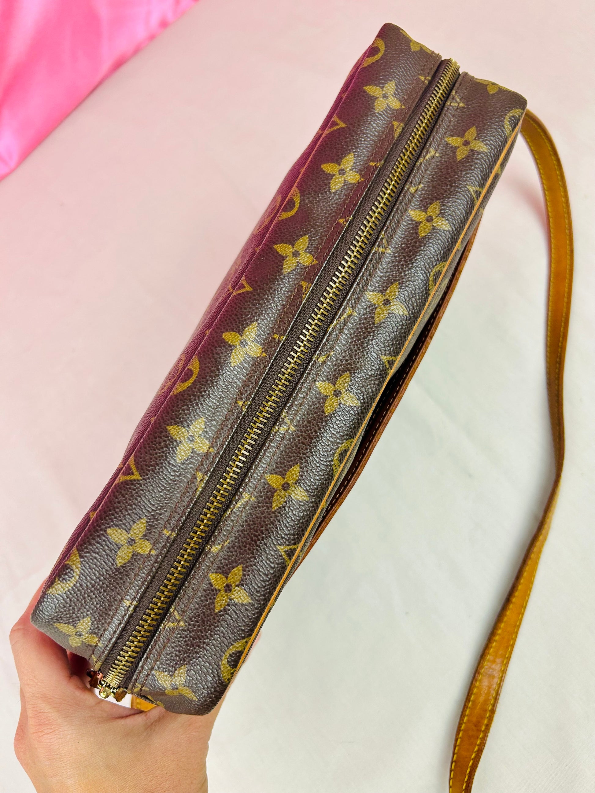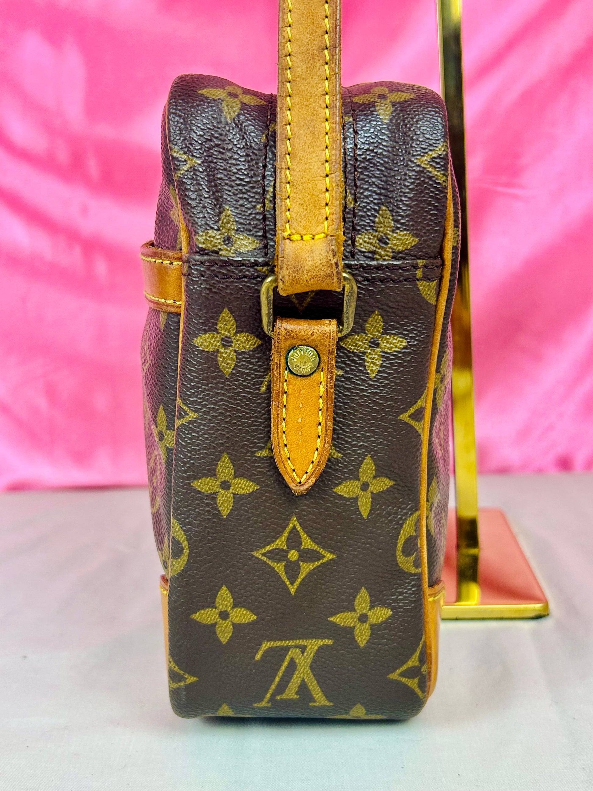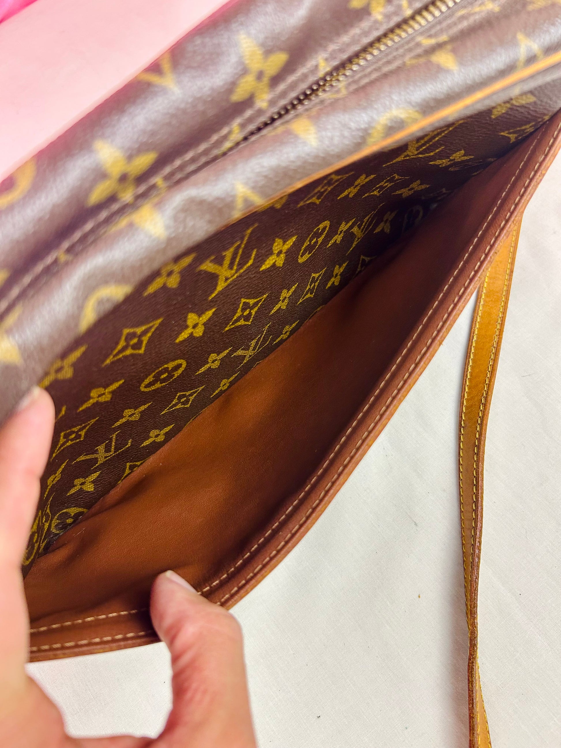 š Description: The Trocadero 30 is the largest of this model. Canvas is in beautiful condition with no cracks or tears. Leather piping is in great condition. Normal wear on the leather trim on the front and some marking on the corner leather tabs. Interior is clean with some wear and markings. Previous owner replaced the lining of interor and exterior pockets, they are clean and not sticky. Zipper pulls smoothly. Leather strap is in good condition with no cracks or tears. Chapes are strong. Hardware is shiny. No foul odors noted.