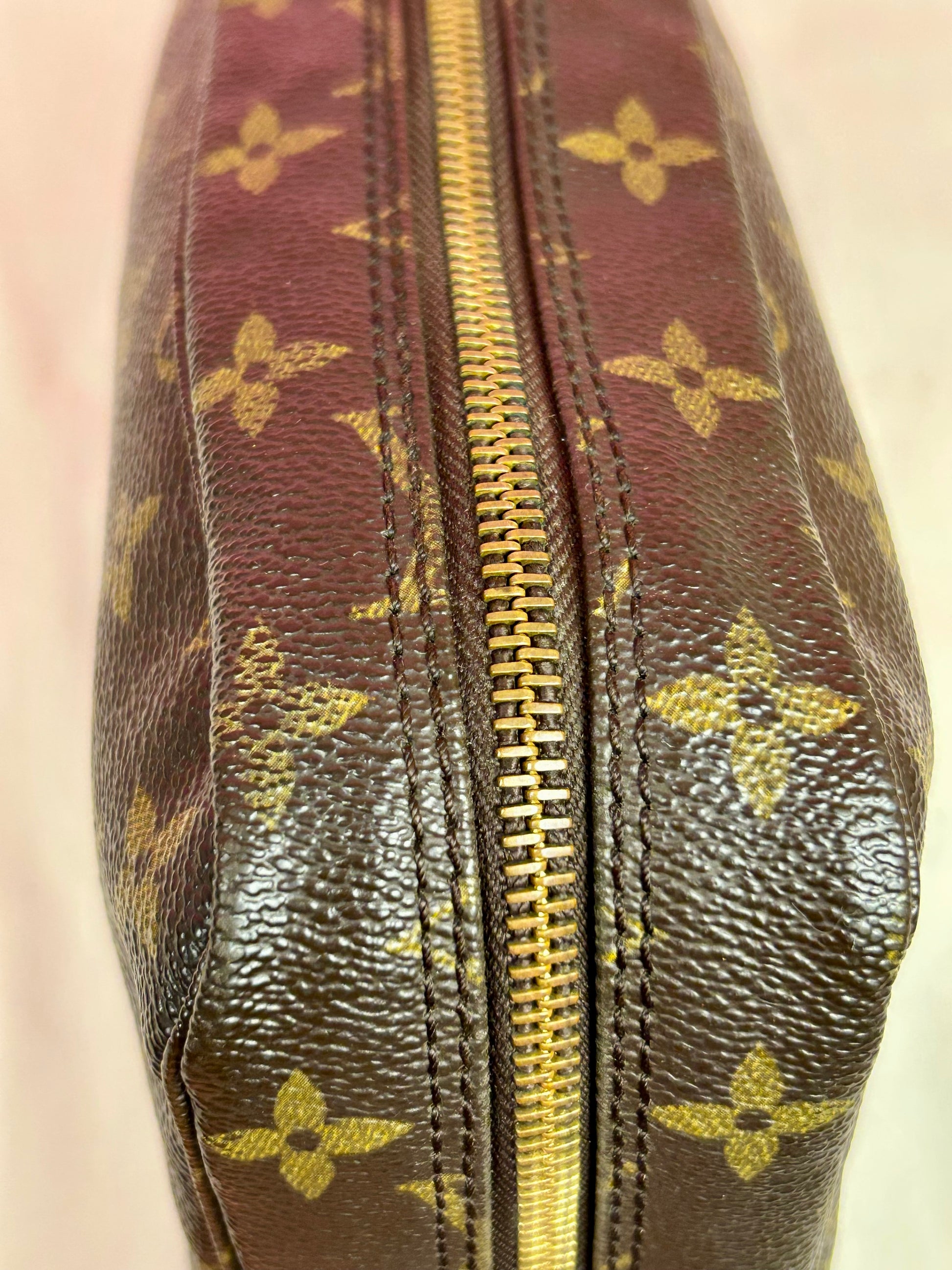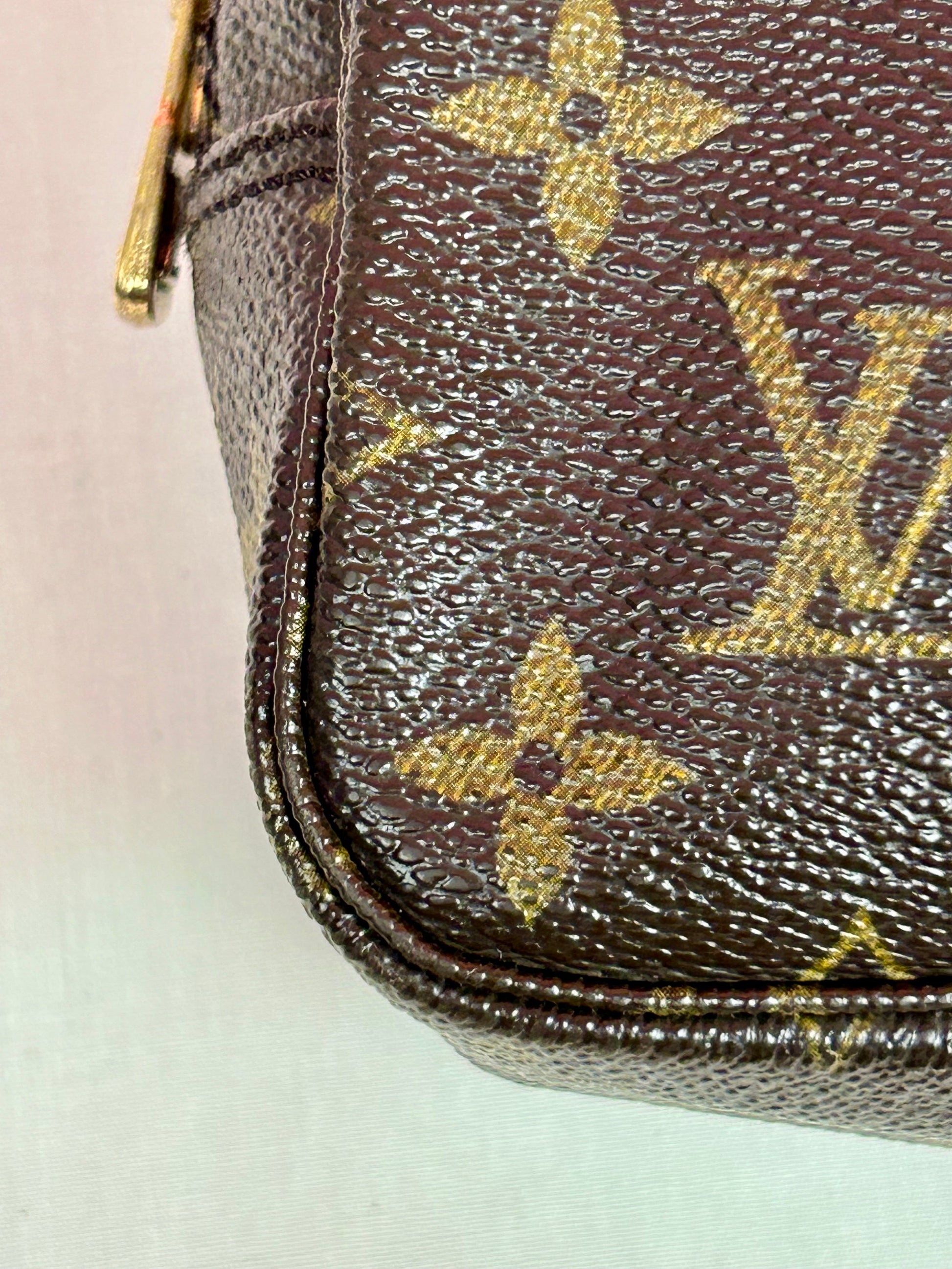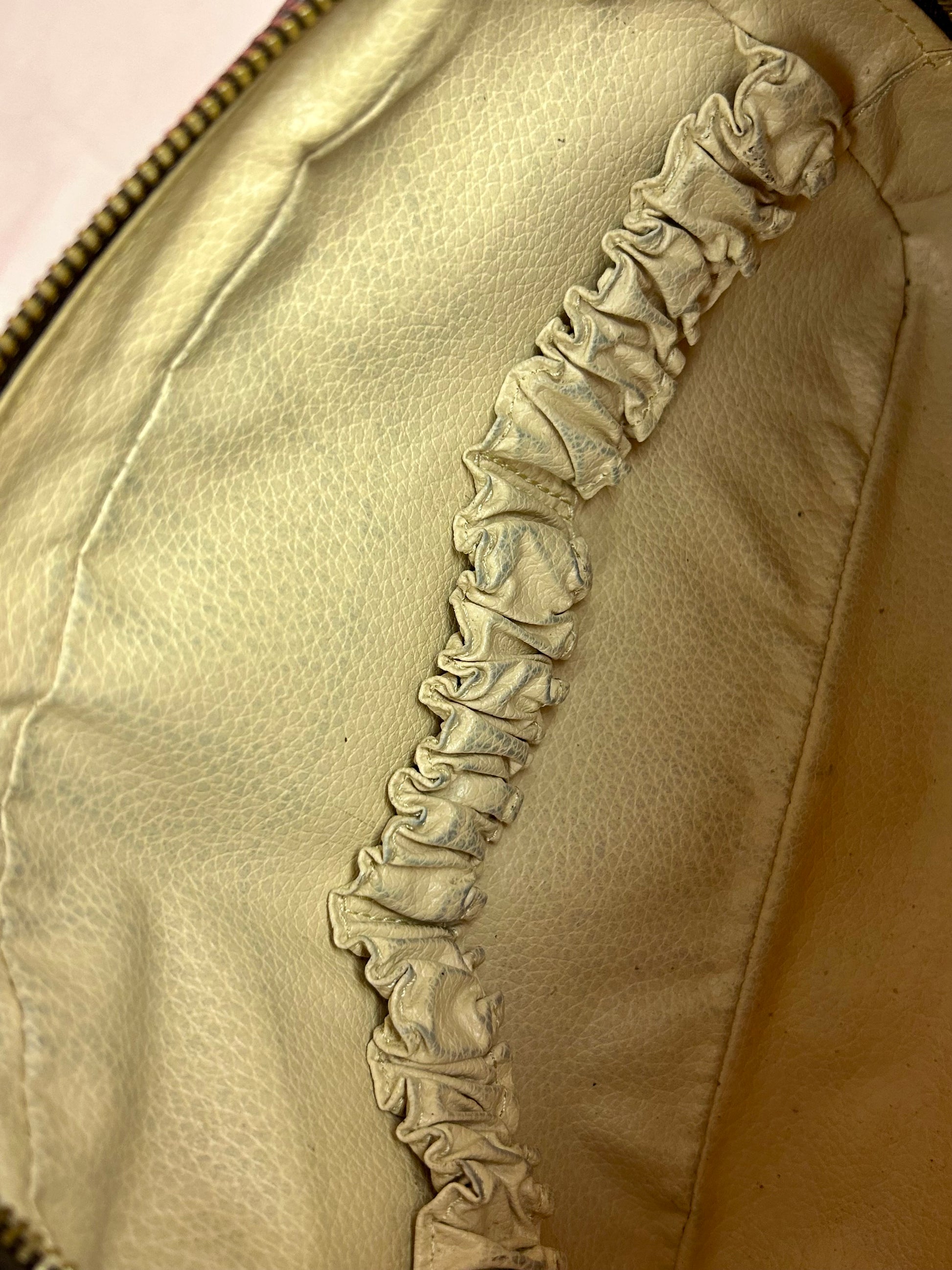 š Description: Canvas is in beautiful condition with no tears or cracks. Interior is clean with some light color transfer. Zipper functions smoothly. Hardware shows some tarnishing consistent with age and use.