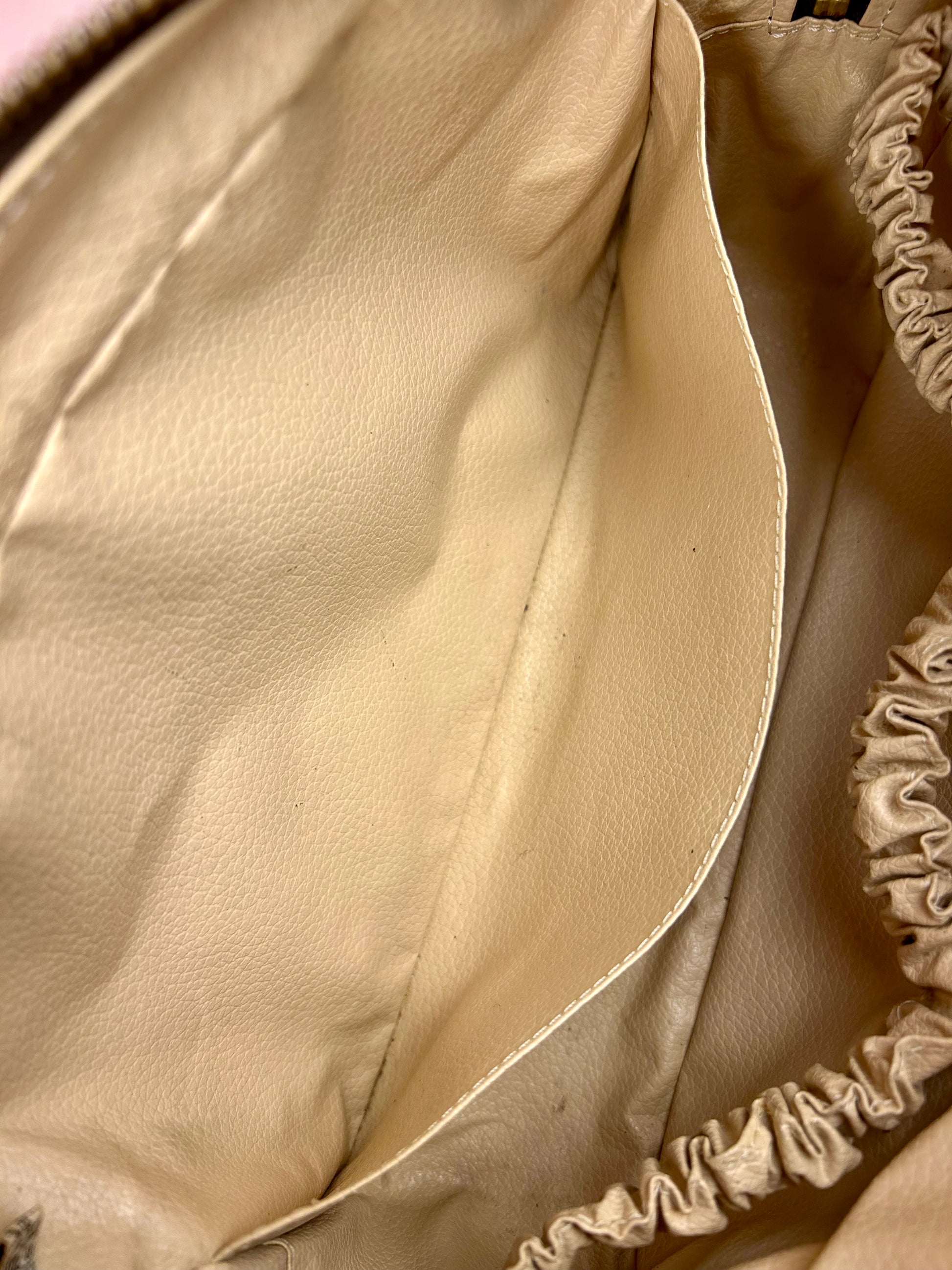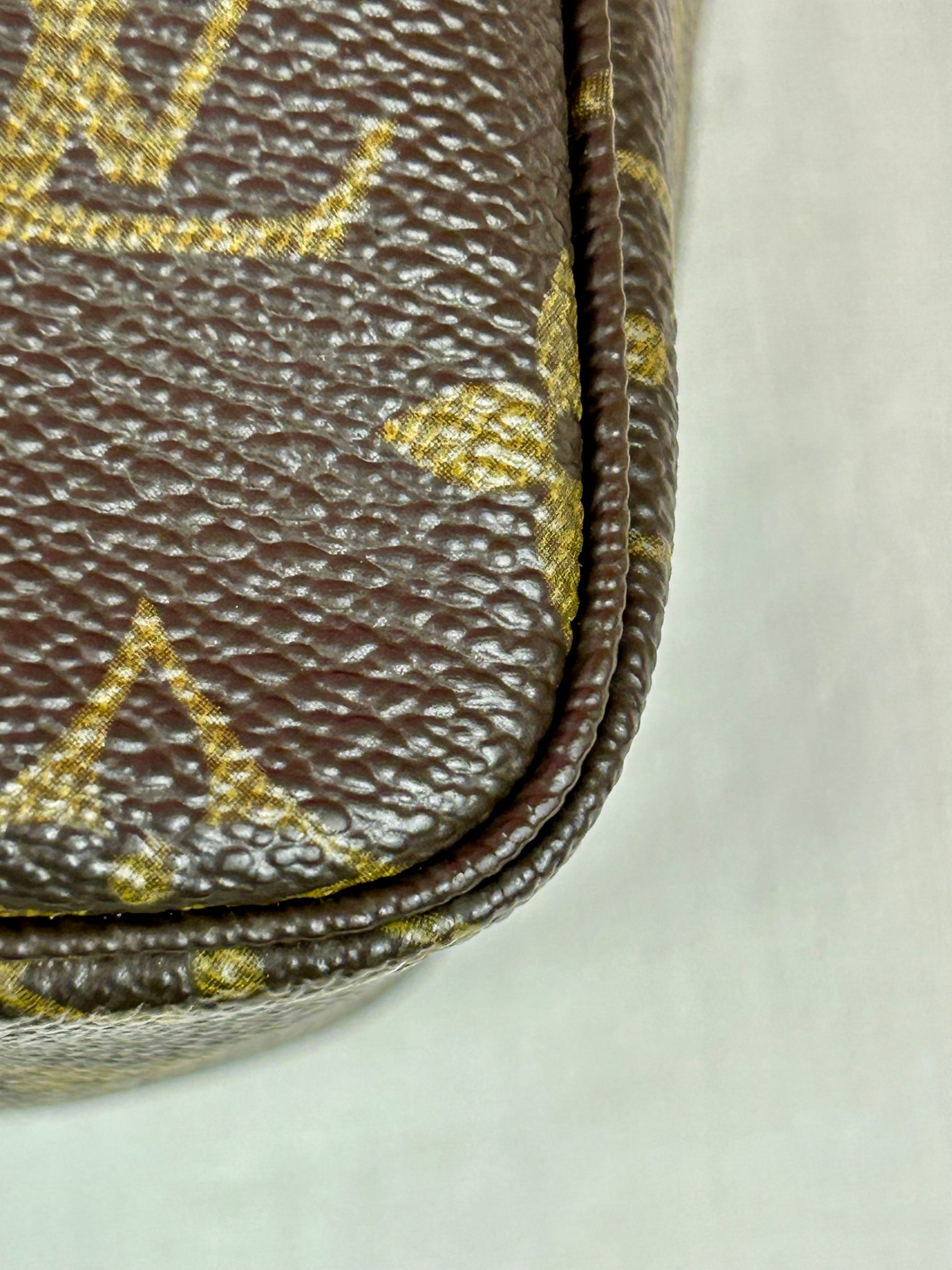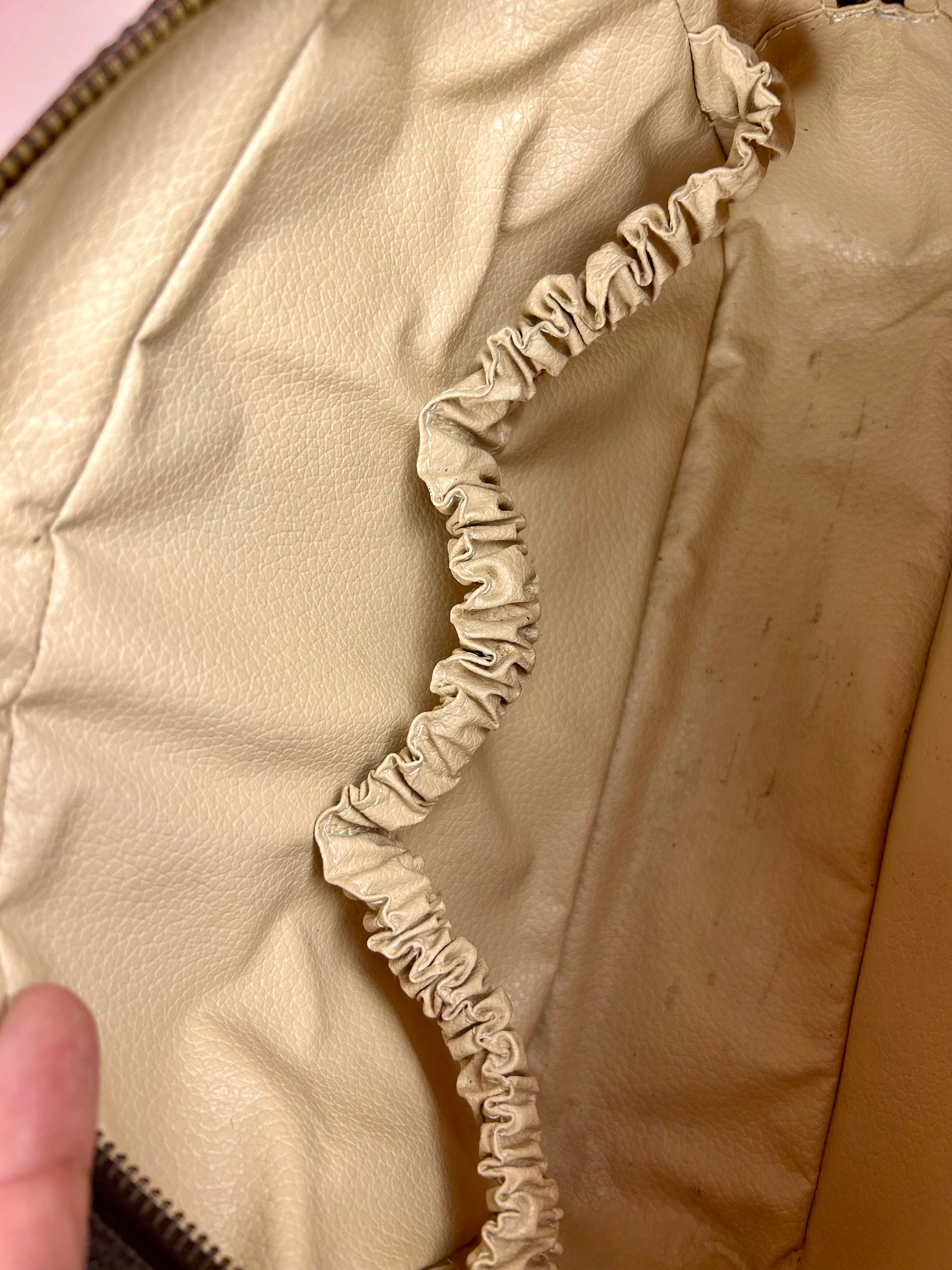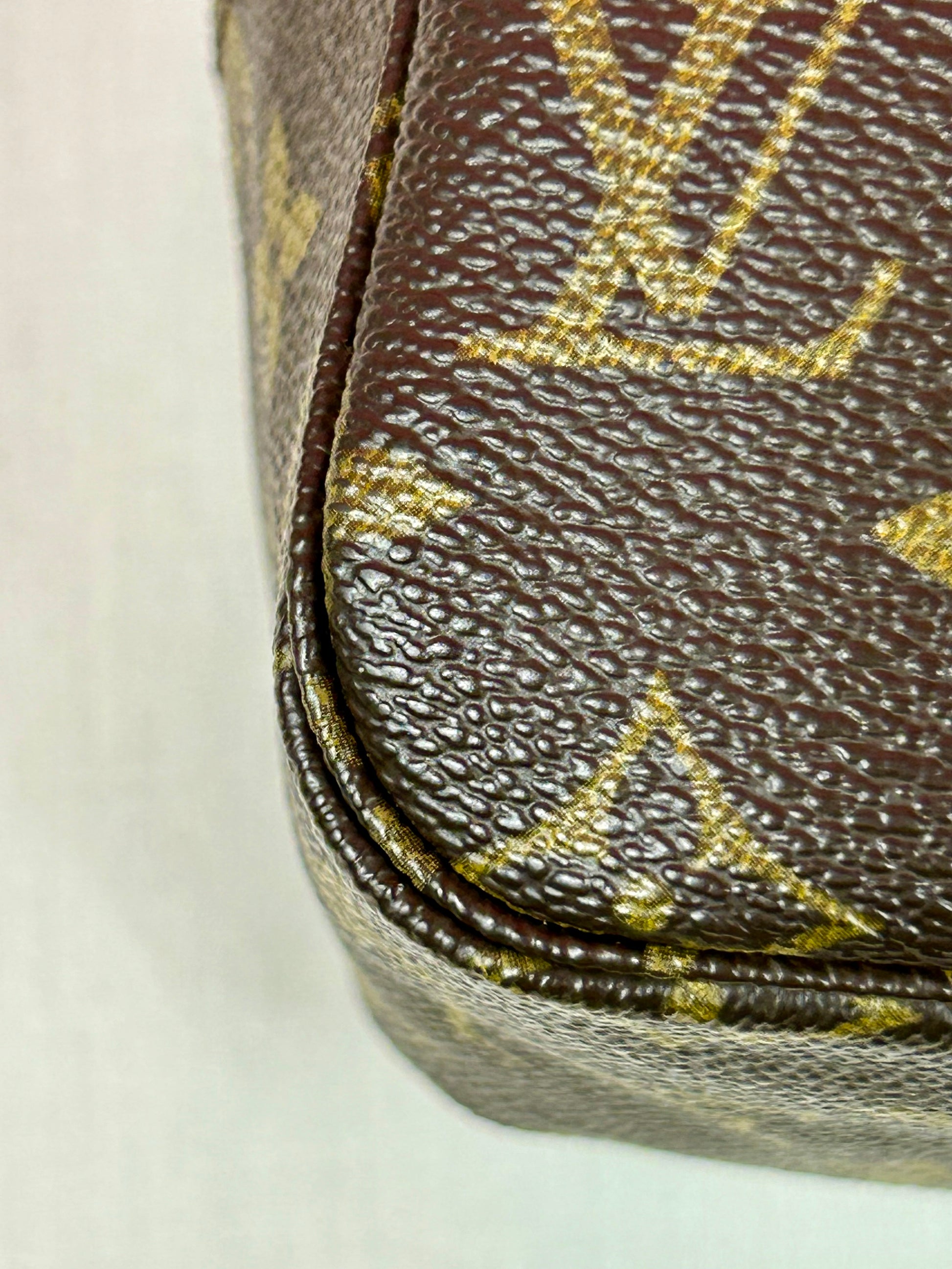 💜 Description: This toiletry pouch is the largest of this model. Canvas is in beautiful condition with no tears or cracks. There are a few micro markings on the left side of the canvas. Interior is clean with some light markings near the inside of the zipper pull. Zipper functions smoothly. Hardware is shiny.