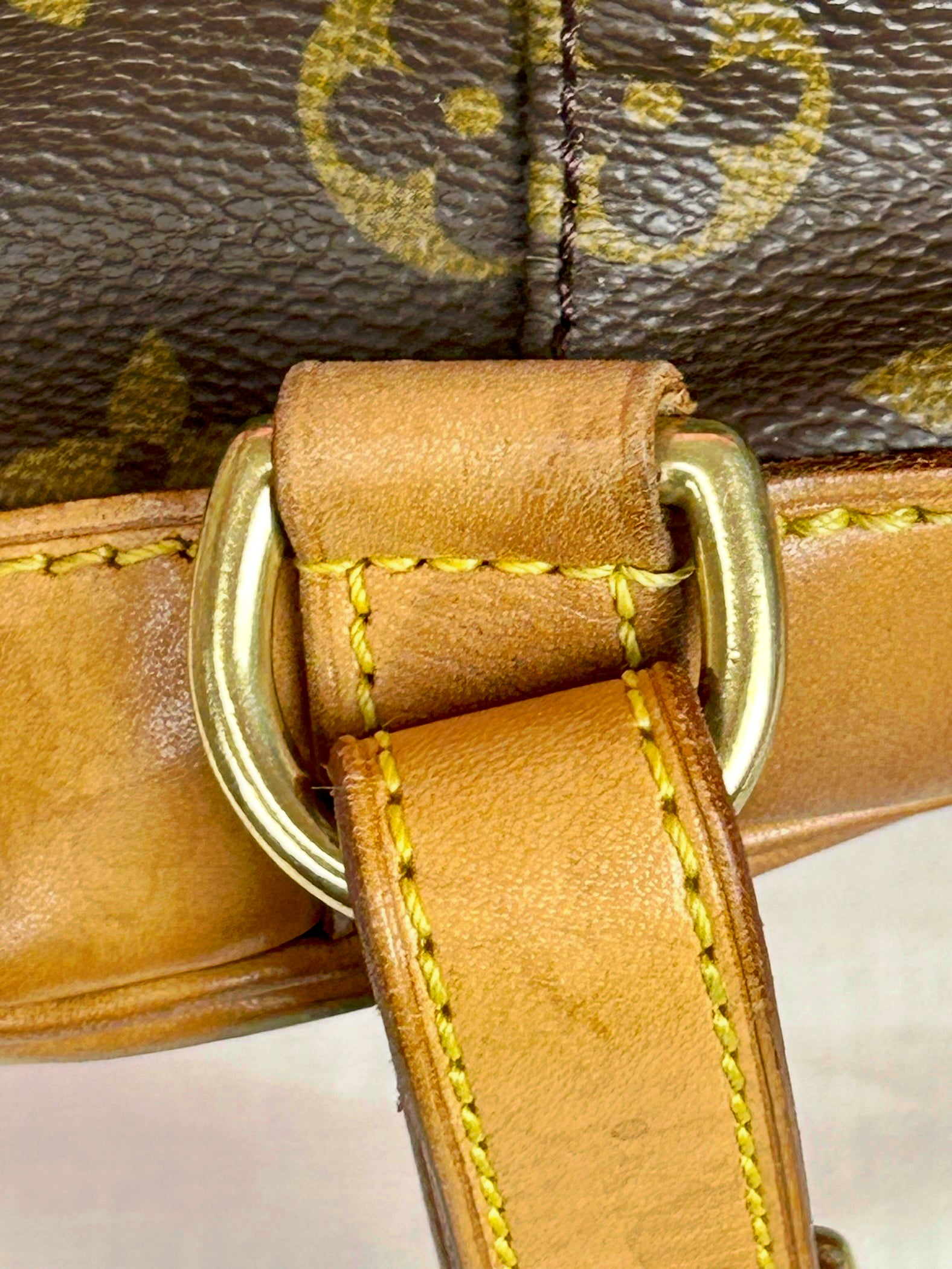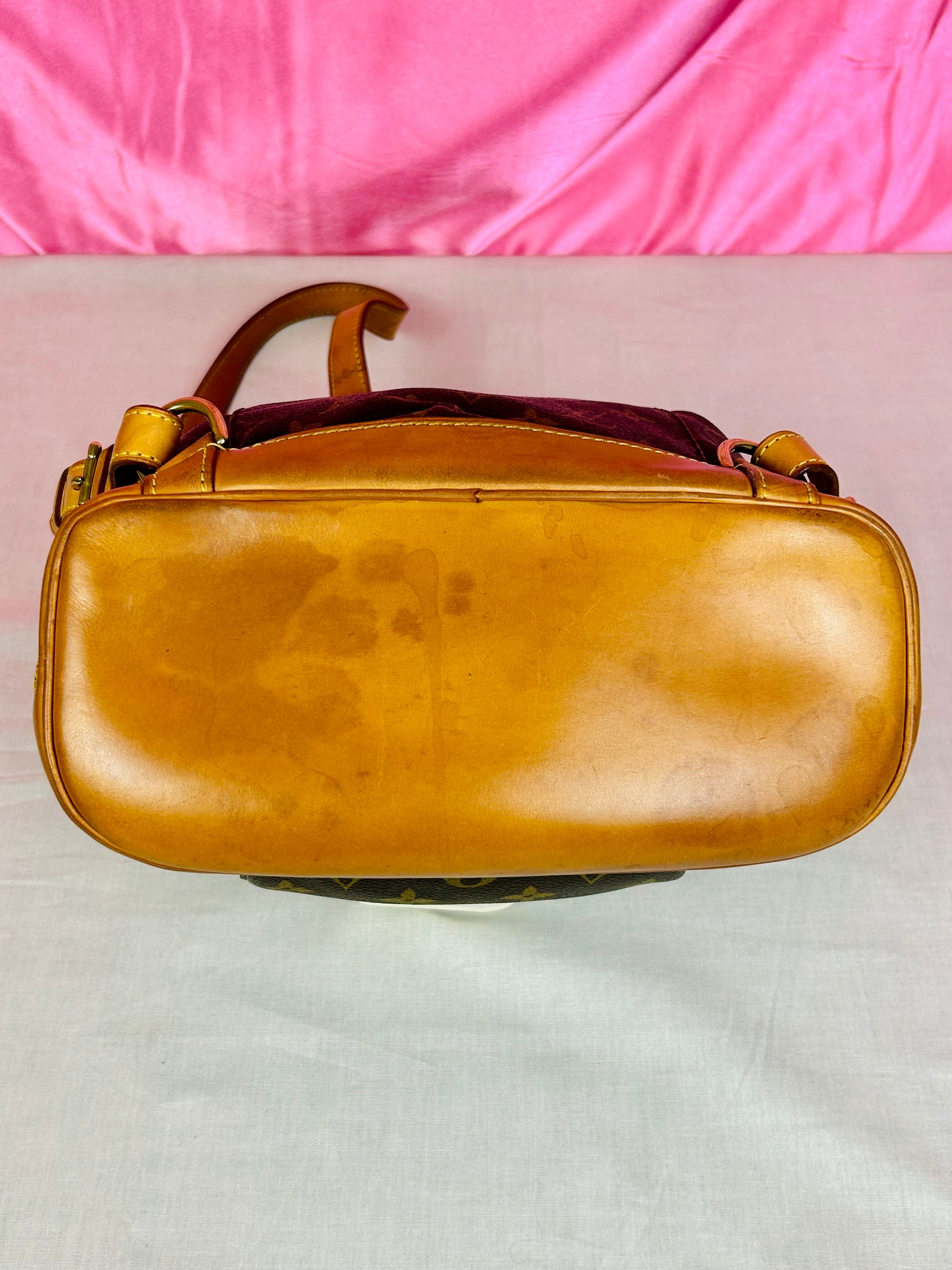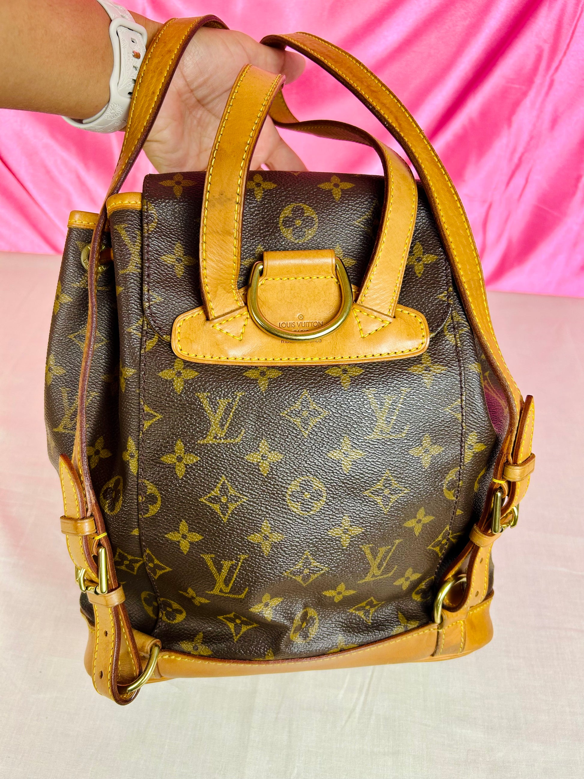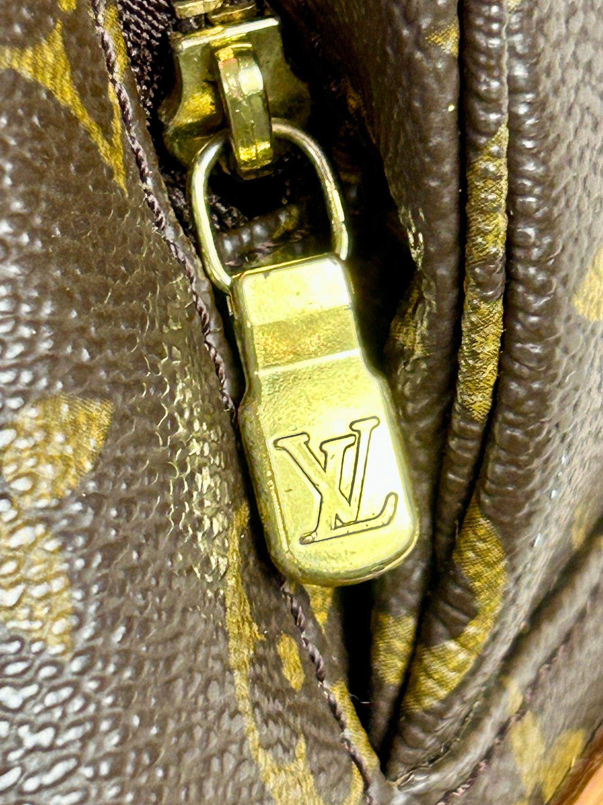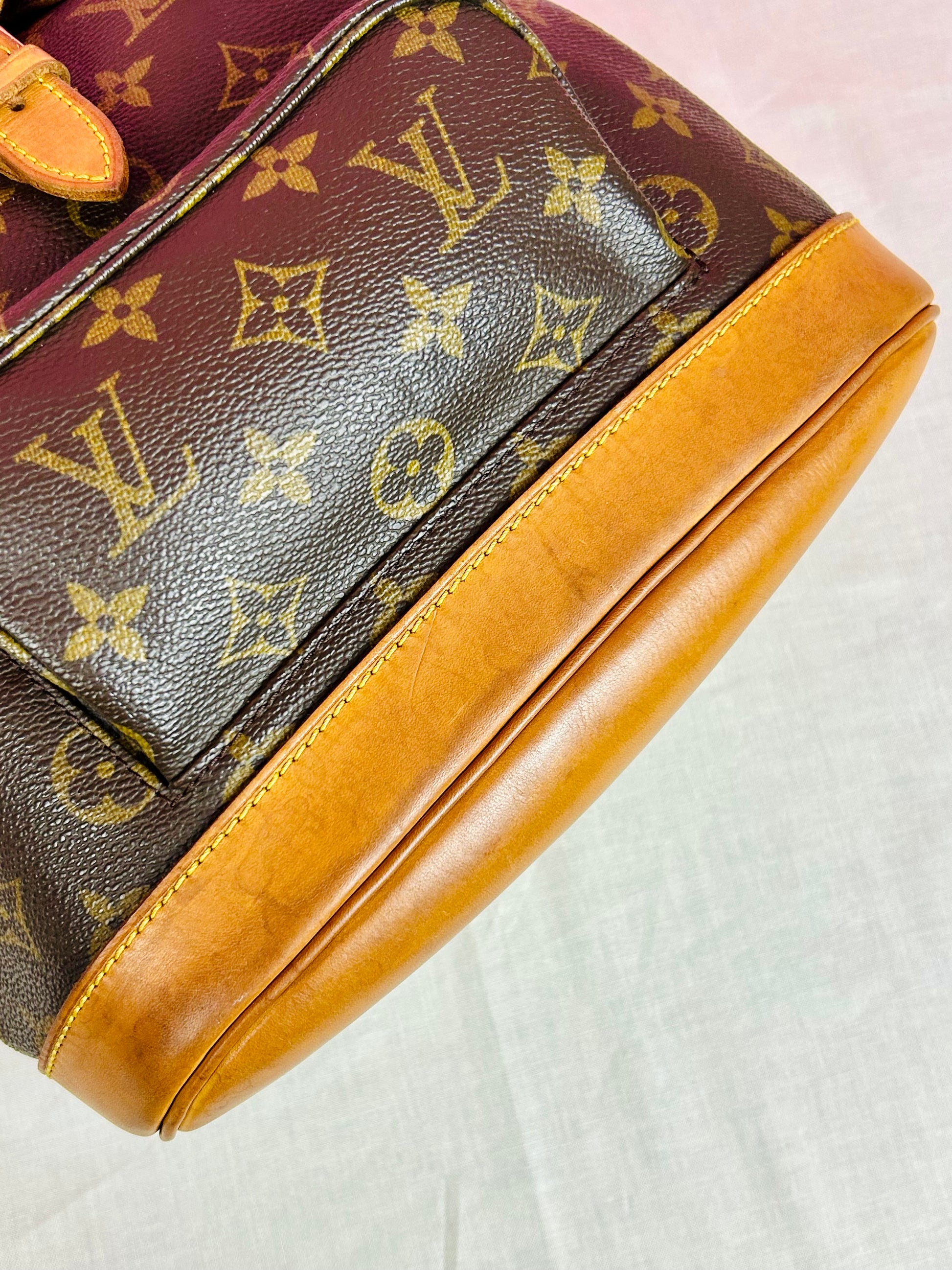π Description: A perfect hands-free bag! Canvas is in great condition, no cracks or tears. Leather has watermarks throughout, but mostly an even patina. Straps and chapes are strong, no cracks, but do have wearing and marking consistent with normal usage. Buckle works properly and has no cracks. Trim is in excellent condition, it has no holes or cracks. Hardware is gold and works properly. Front pocket has some light markings. Interior has some mild pen marking but is otherwise clean. A classic and versatile piece!