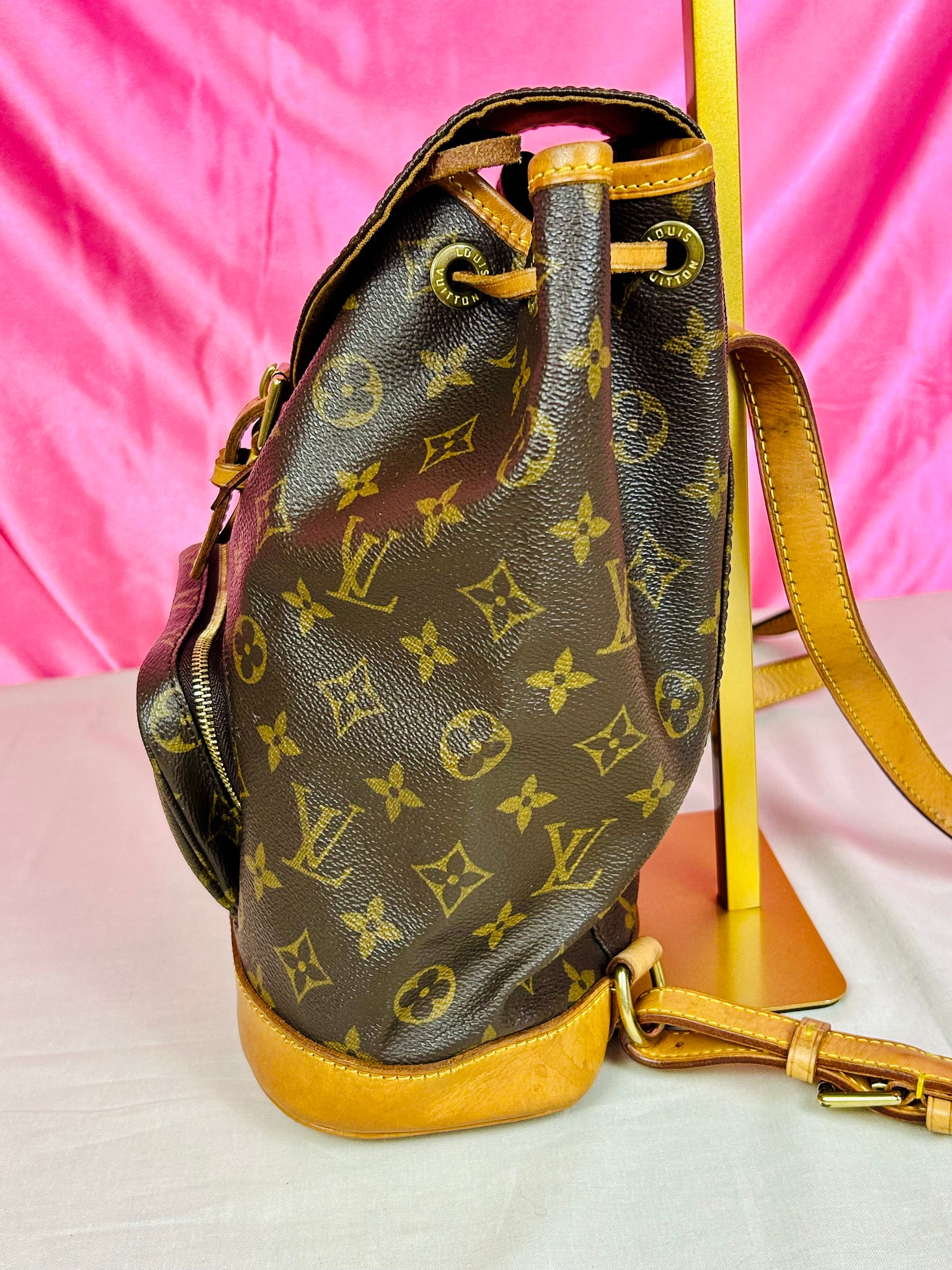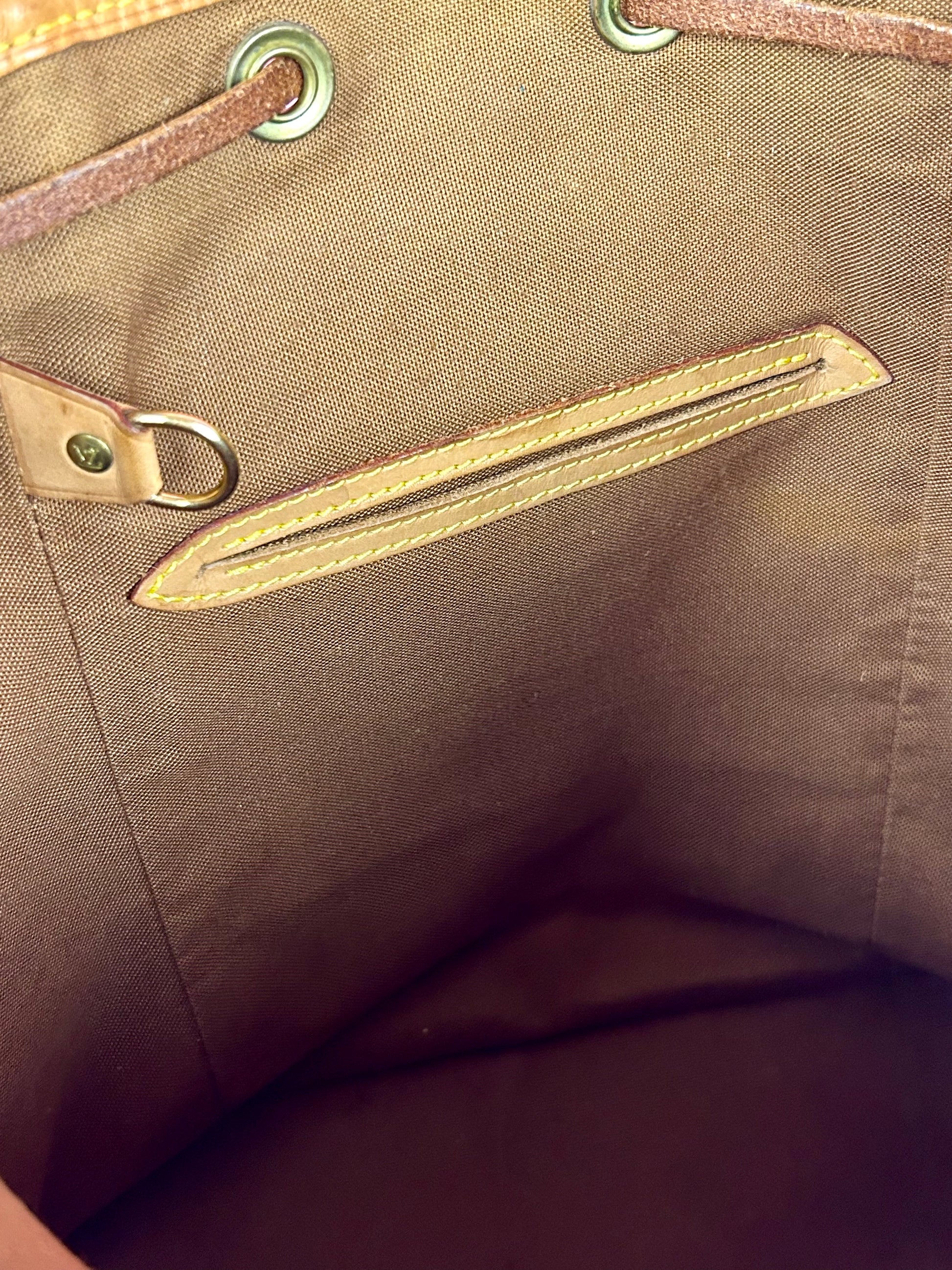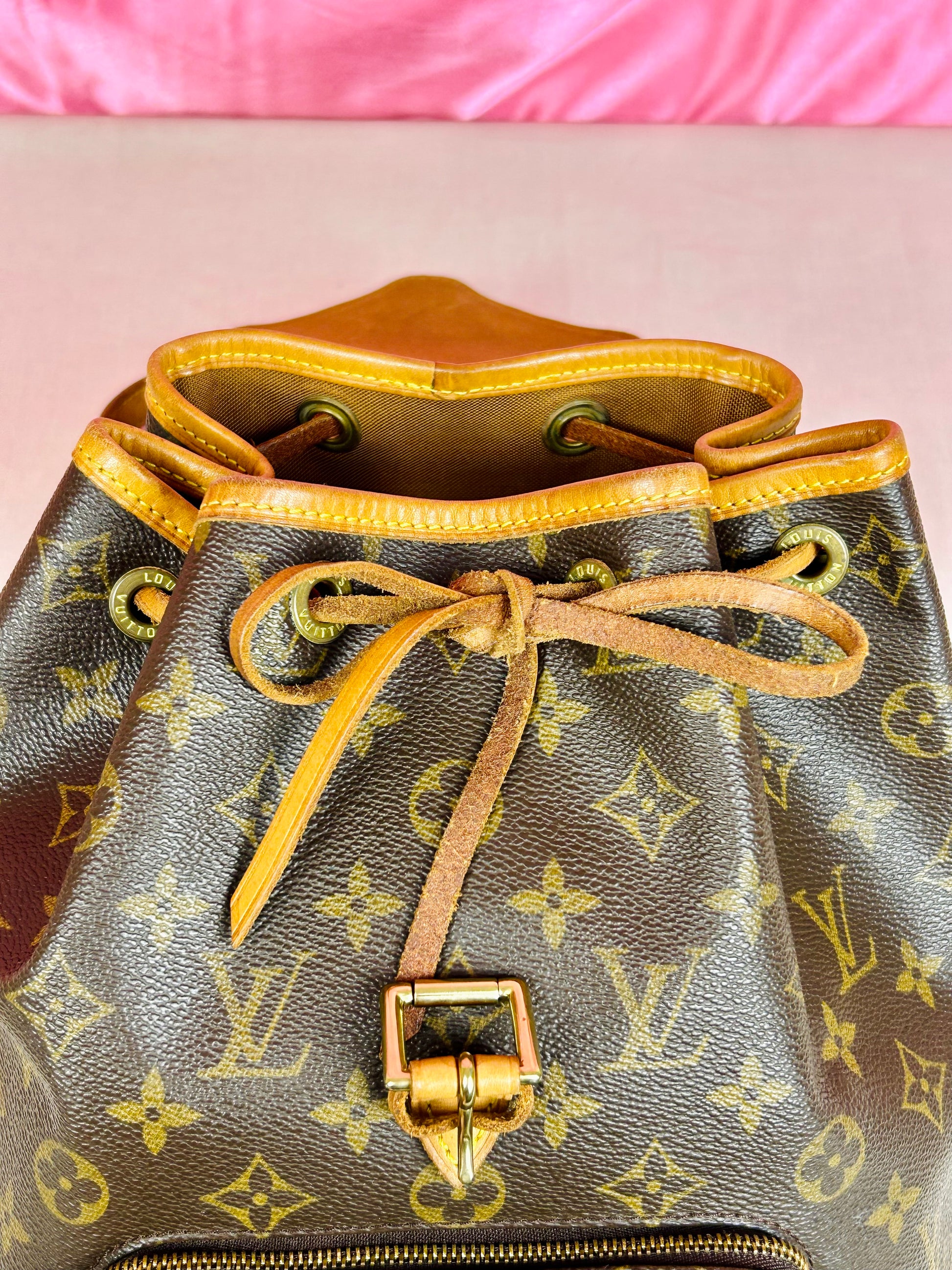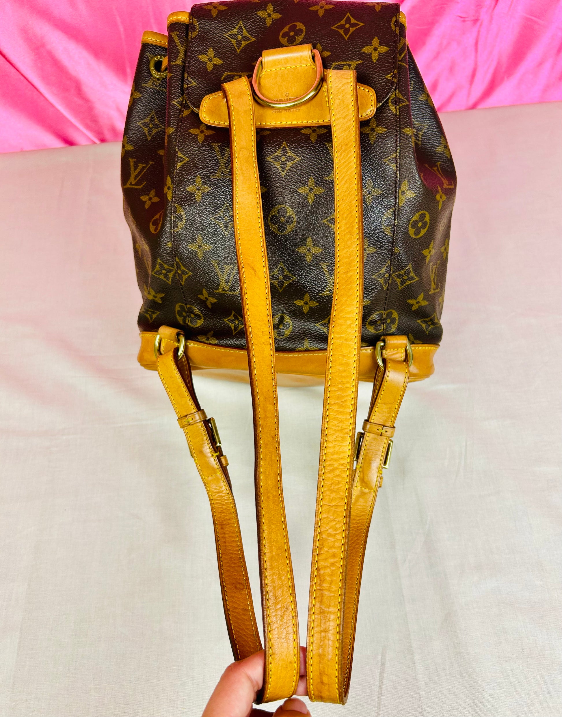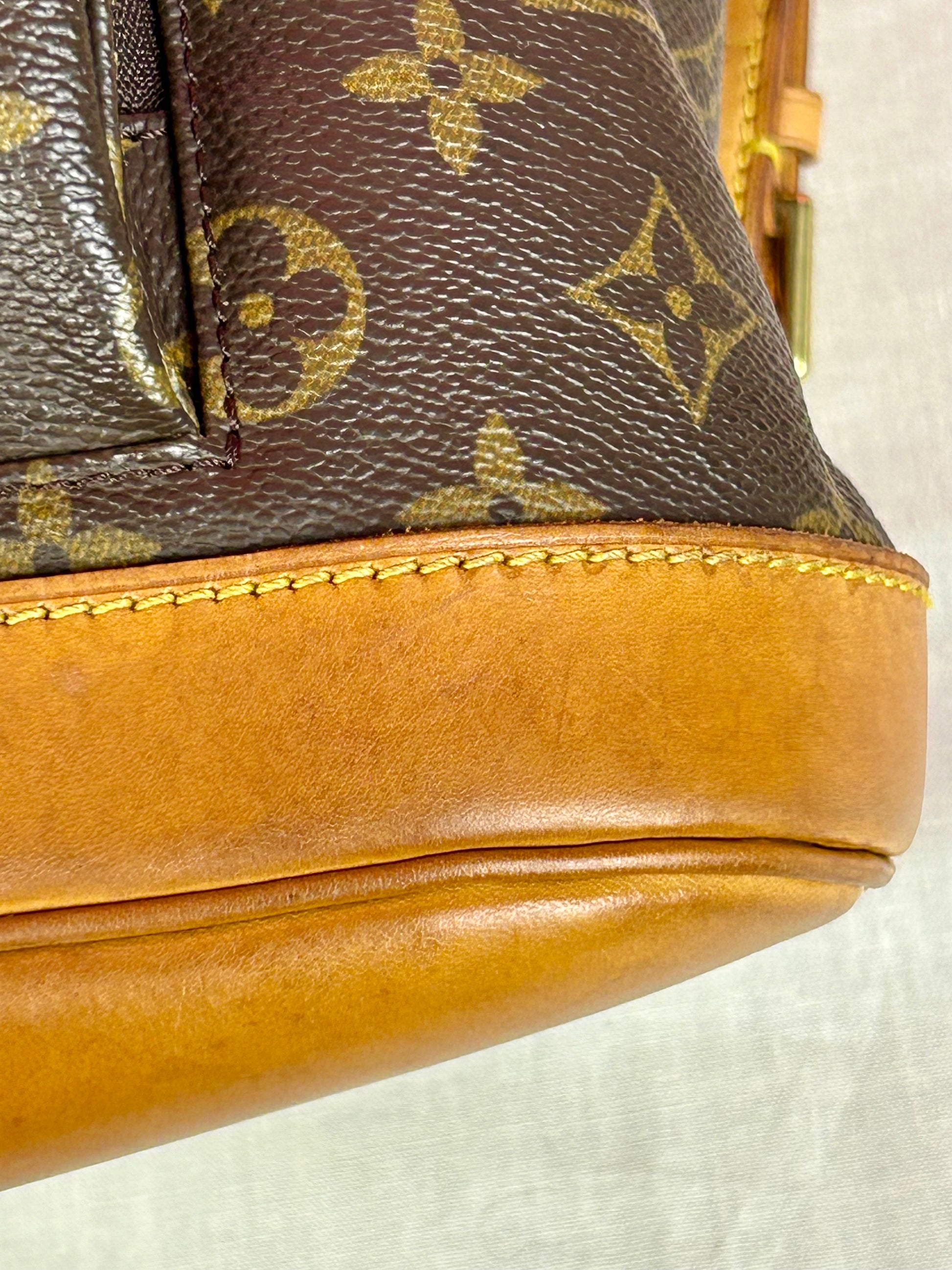 π Description: A perfect hands-free bag! Canvas is in great condition, no cracks or tears. Leather has watermarks throughout, but mostly an even patina. Straps and chapes are strong, no cracks, but do have wearing and marking consistent with normal usage. Buckle works properly and has no cracks. Trim is in excellent condition, it has no holes or cracks. Hardware is gold and works properly. Front pocket has some light markings. Interior has some mild pen marking but is otherwise clean. A classic and versatile piece!