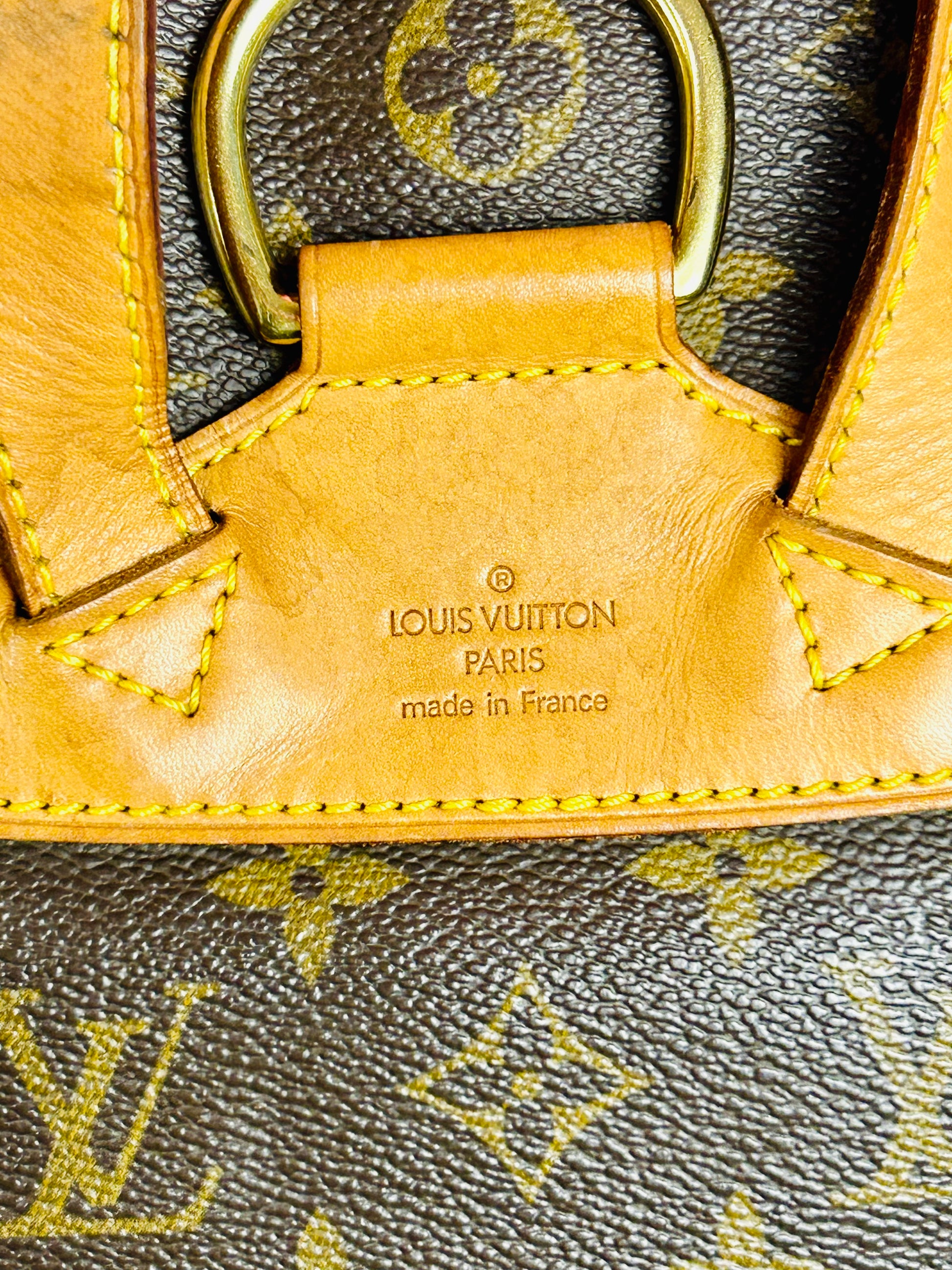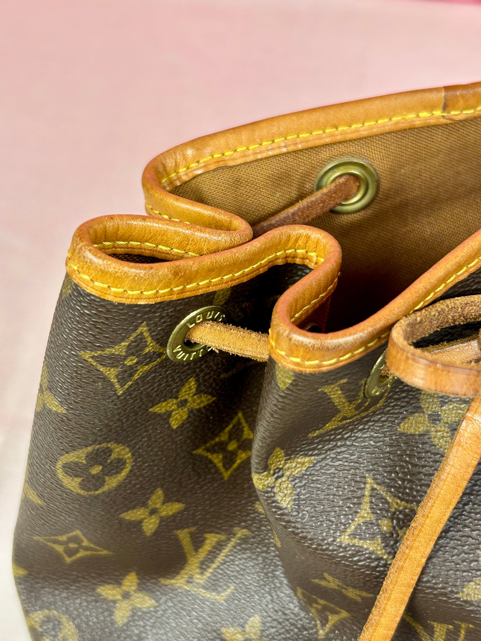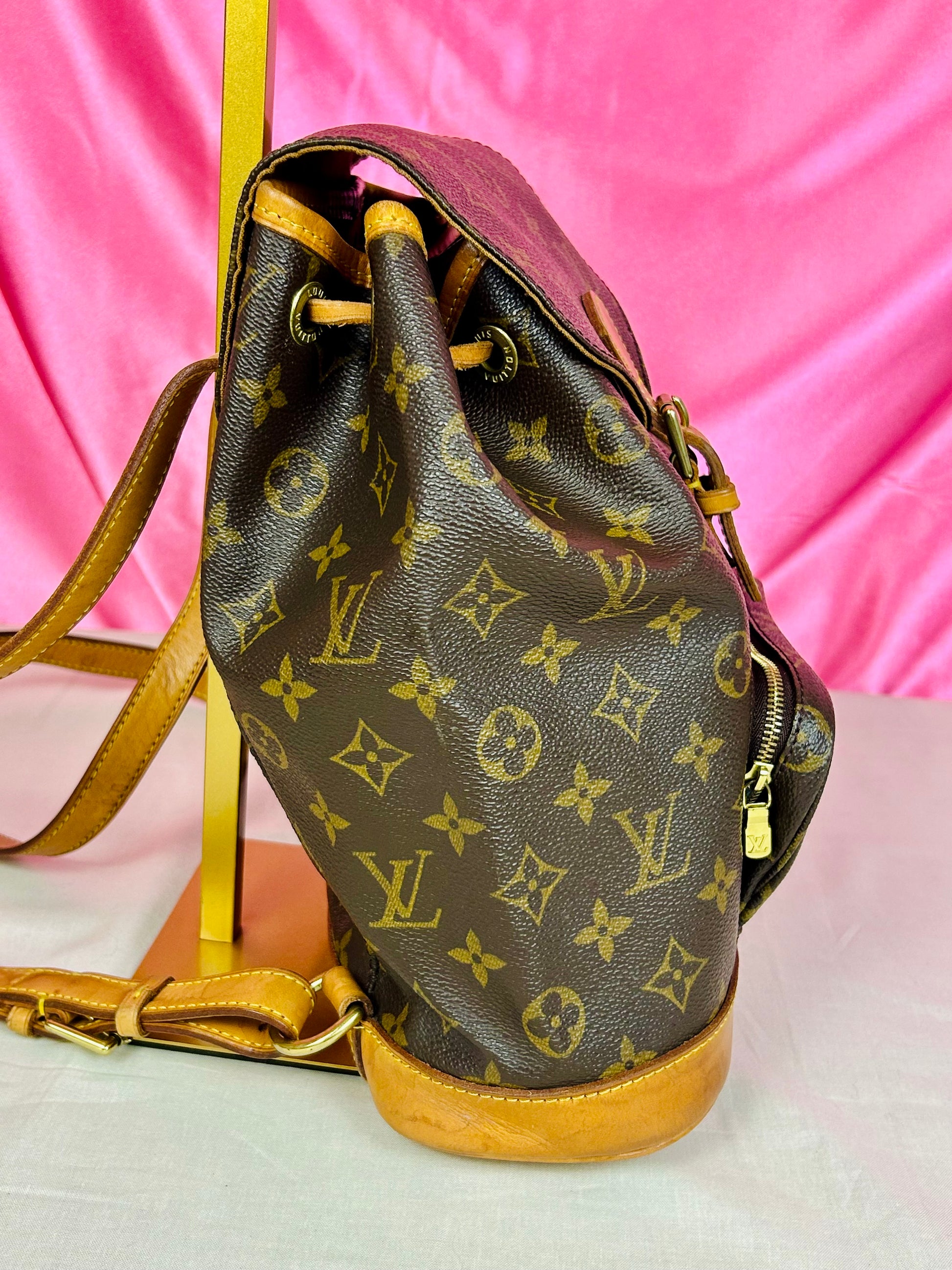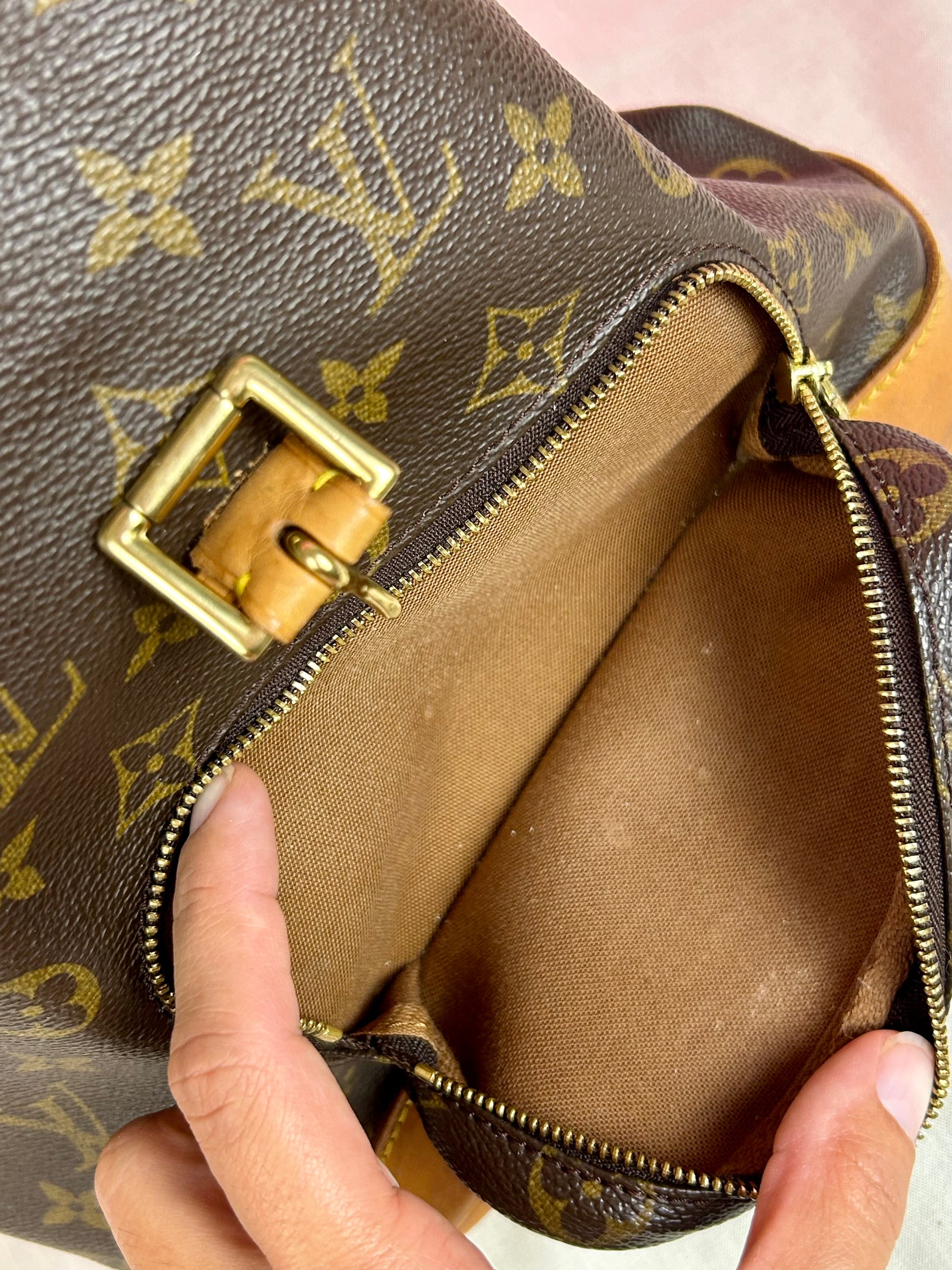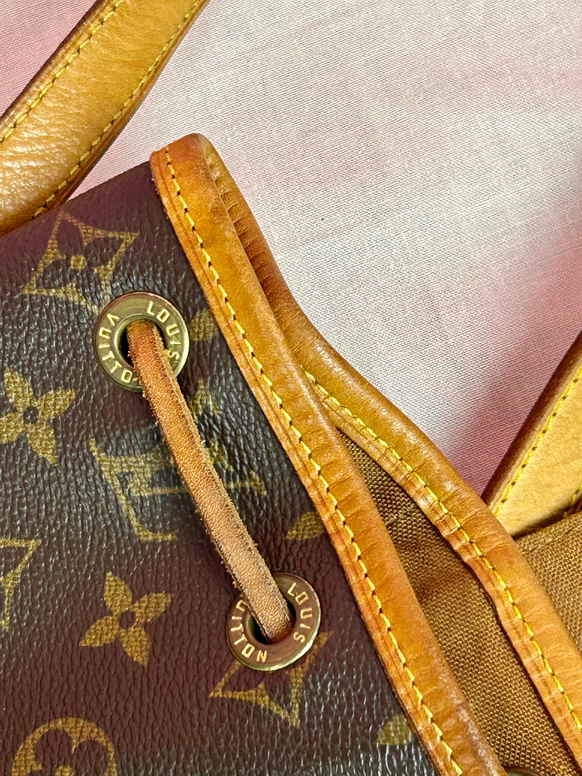 π Description: A perfect hands-free bag! Canvas is in great condition, no cracks or tears. Leather has watermarks throughout, but mostly an even patina. Straps and chapes are strong, no cracks, but do have wearing and marking consistent with normal usage. Buckle works properly and has no cracks. Trim is in excellent condition, it has no holes or cracks. Hardware is gold and works properly. Front pocket has some light markings. Interior has some mild pen marking but is otherwise clean. A classic and versatile piece!