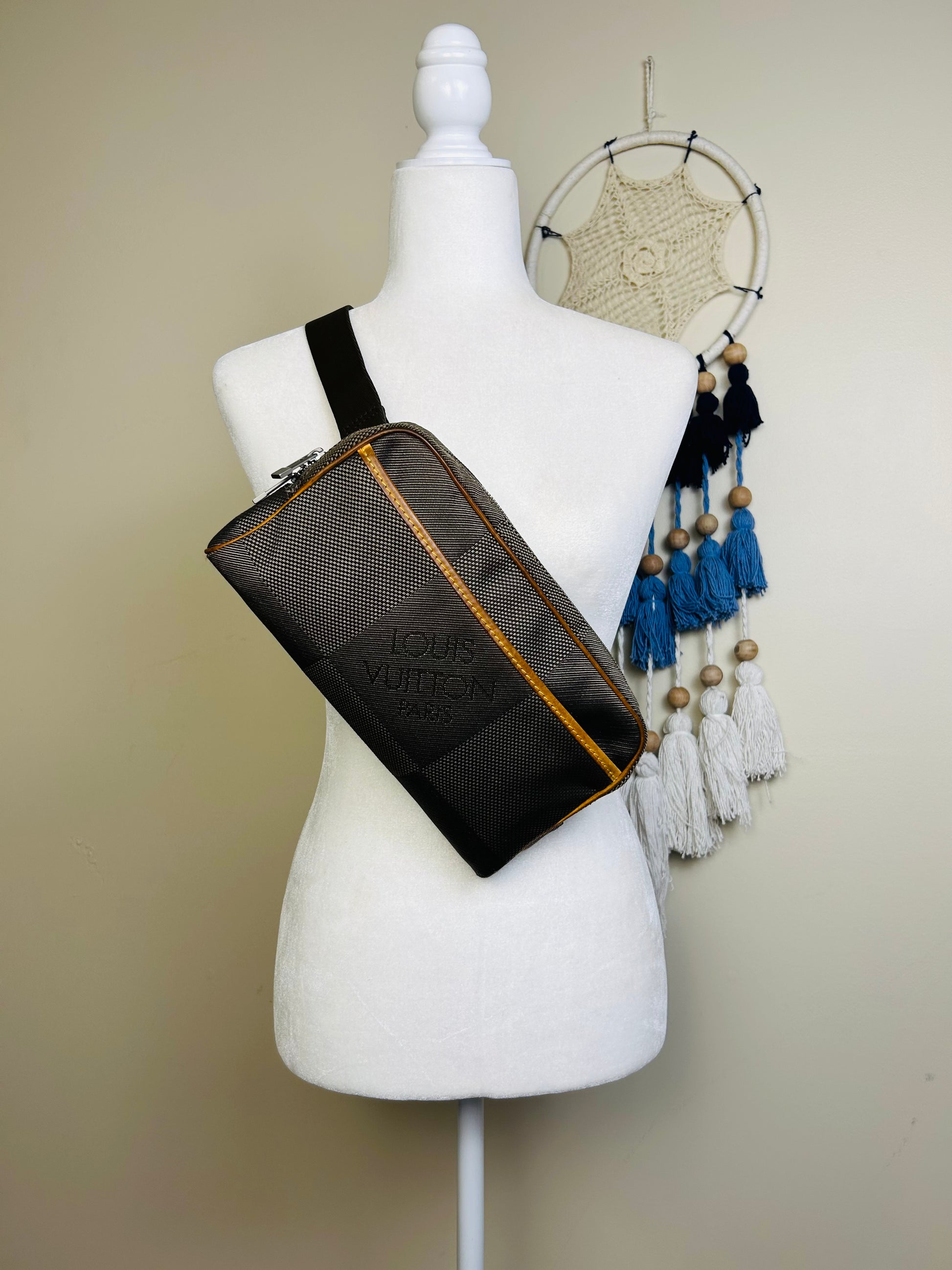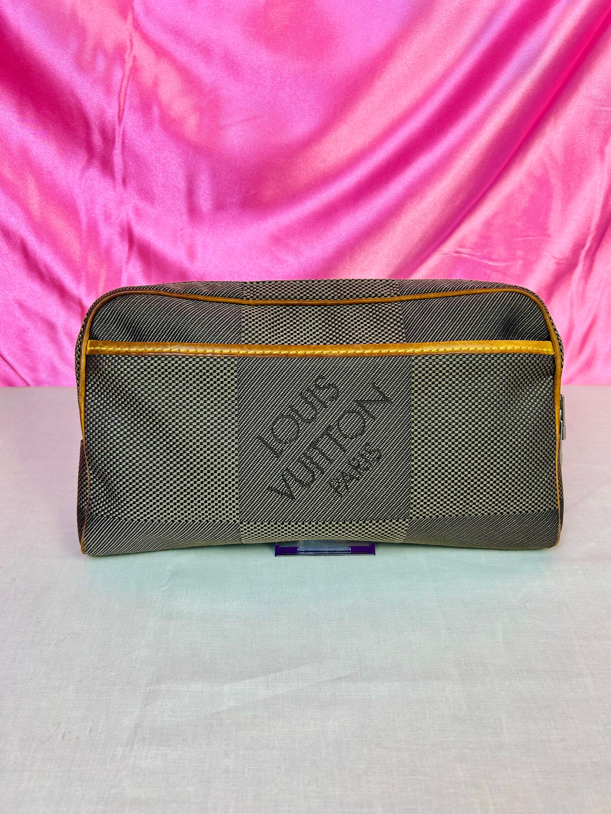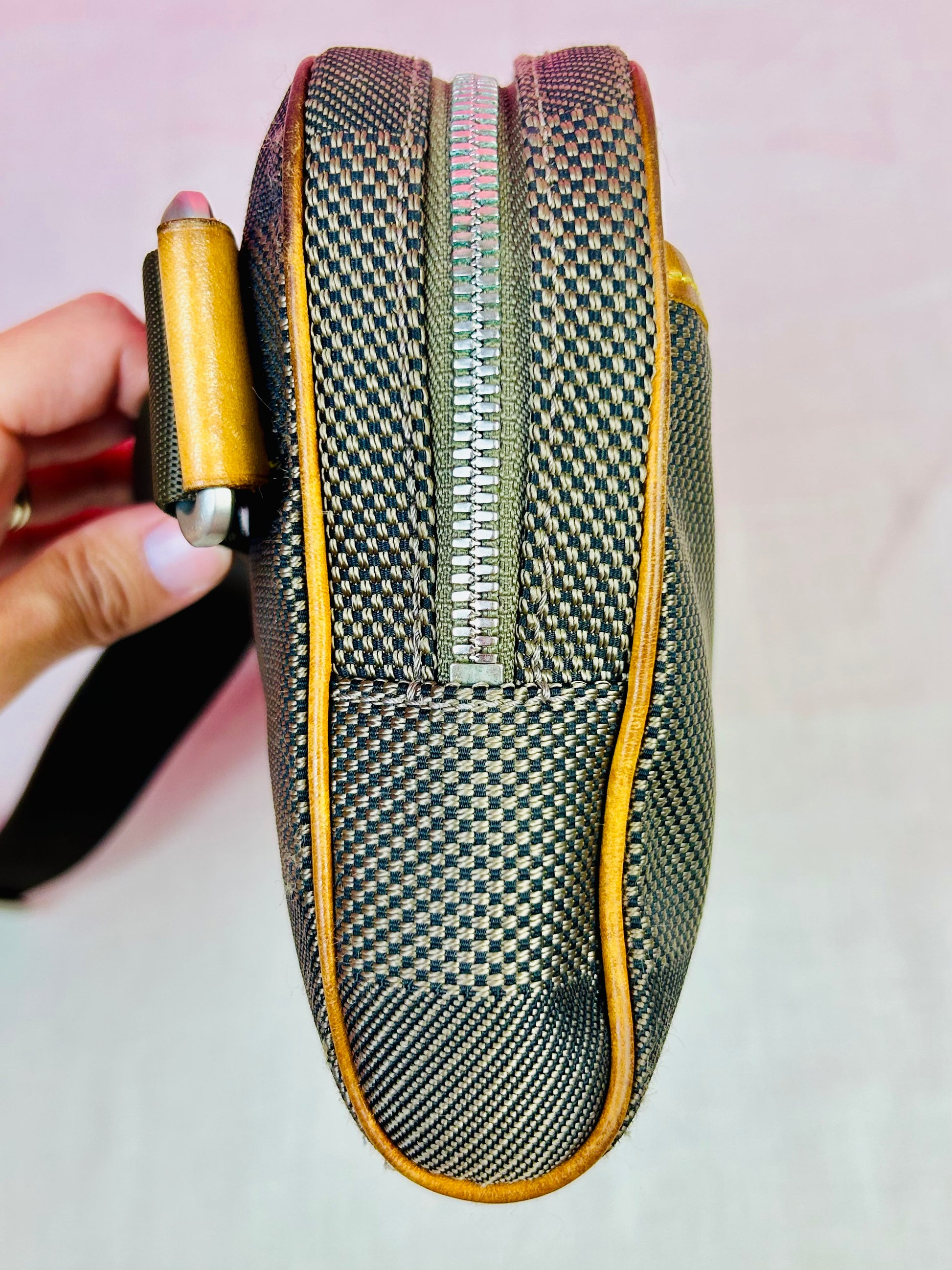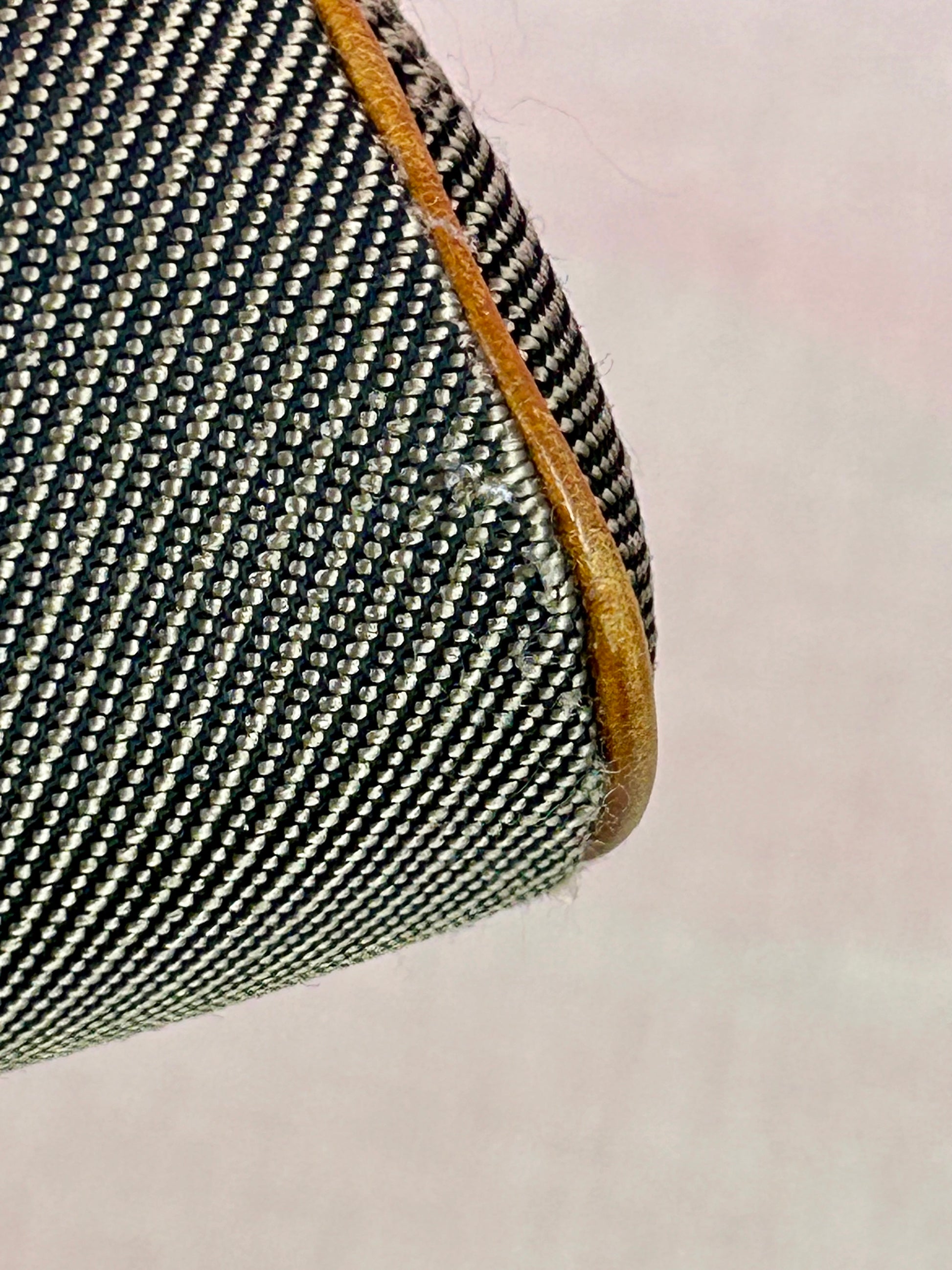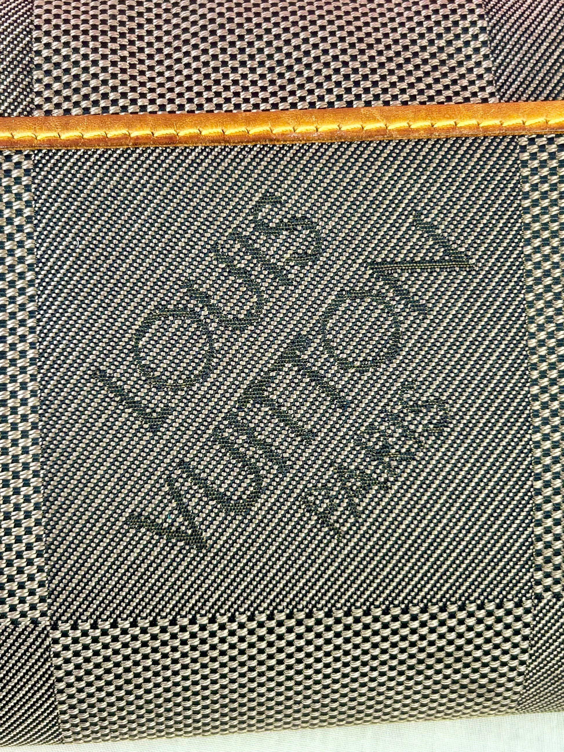 💜 Description: Canvas is in excellent shape with only mild wear near the bottom piping. Leather piping has an uneven patina but no cracks or holes. Front pocket is very clean. All interior pockets are clean, and the interior zipper pulls smoothly. Strap is in excellent condition. Chapes are strong and intact.