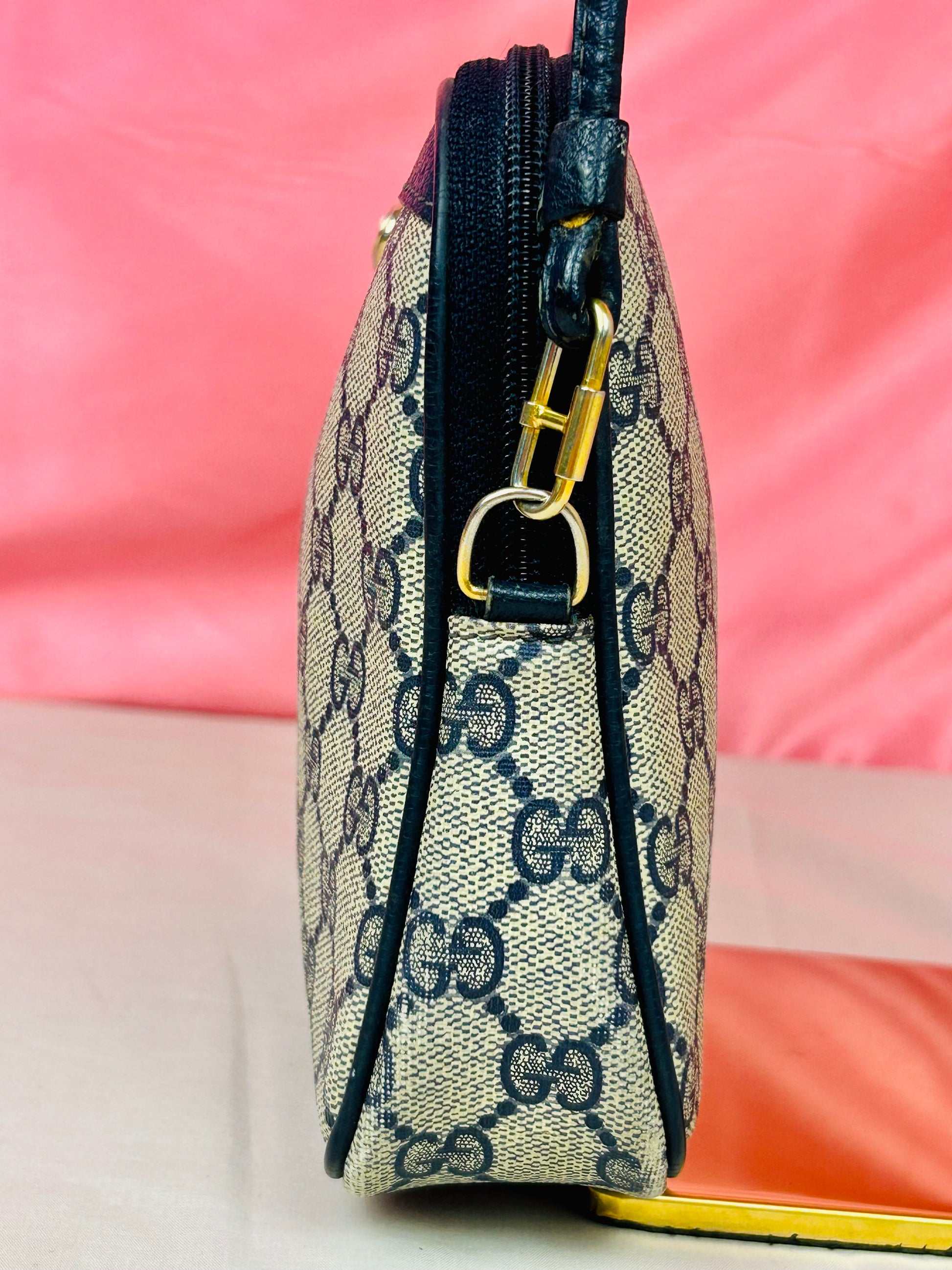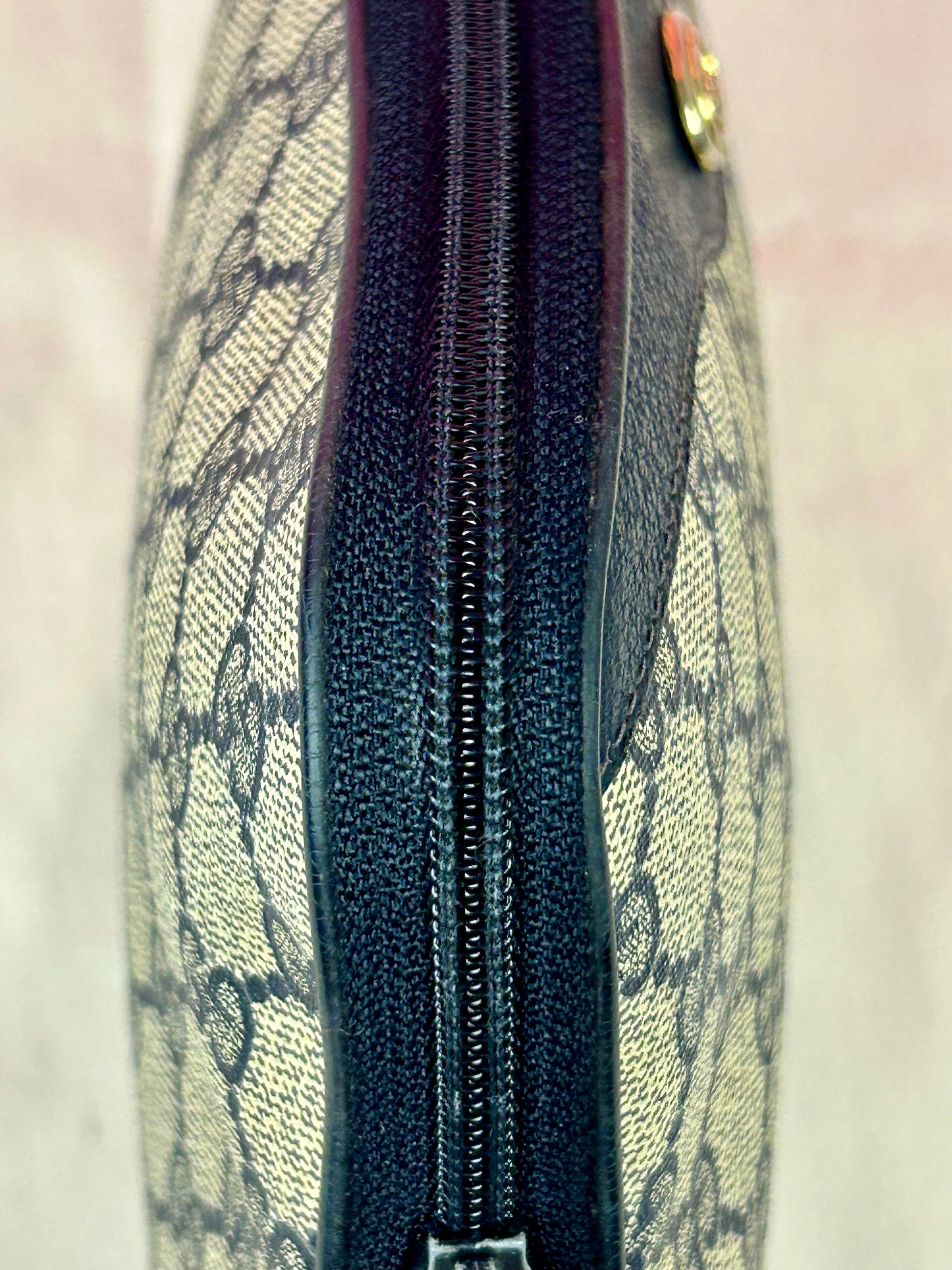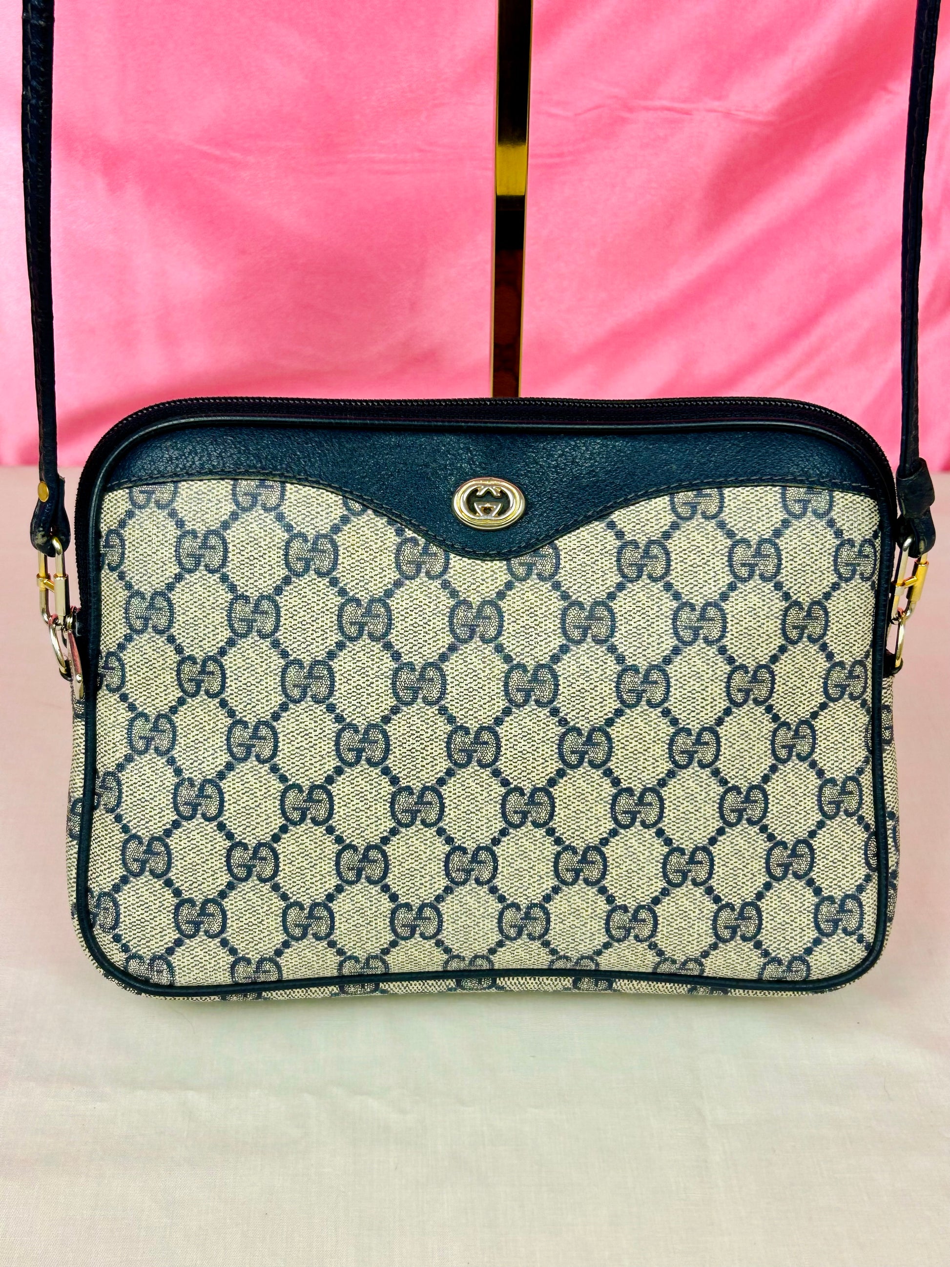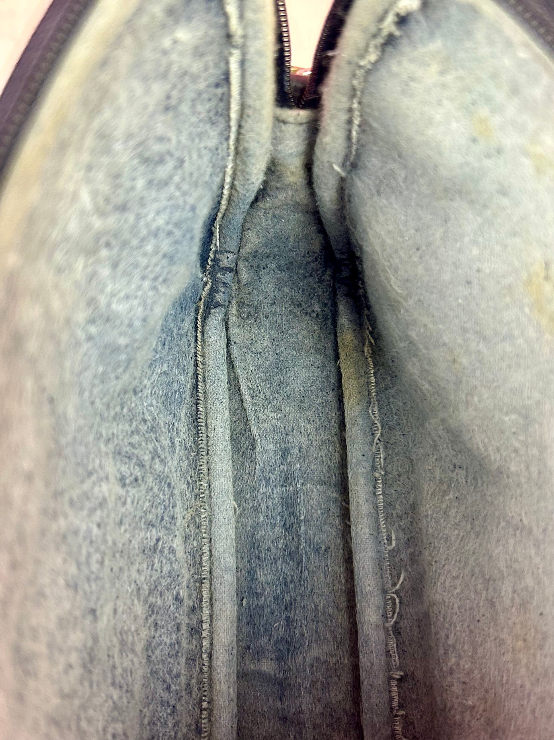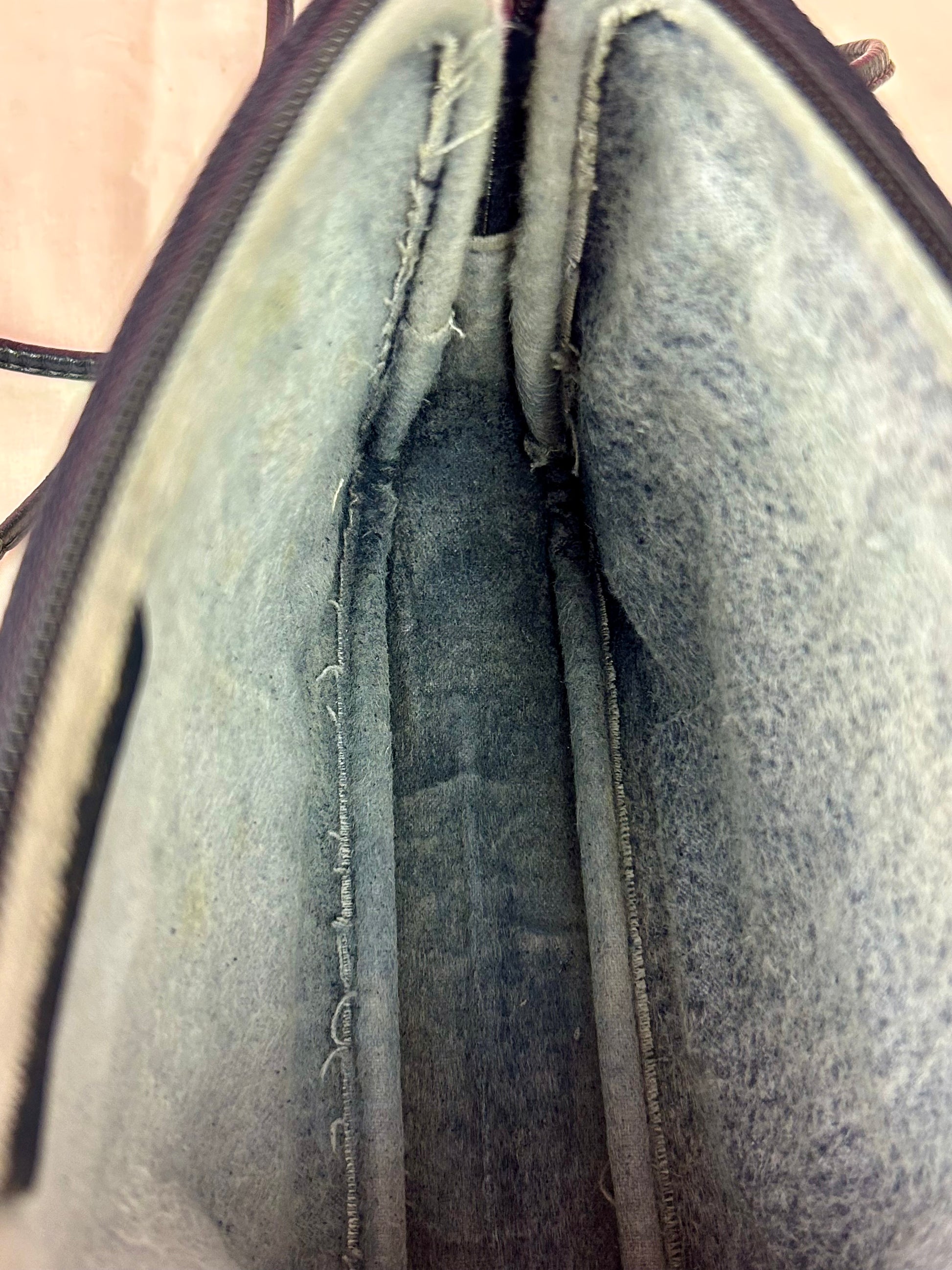 🤎 Description: The canvas is in beautiful condition, no cracks or tears. Navy leather shows light normal wear. Chapes are strong and in excellent condition. The zipper pull works smoothly and hardware has silvered. Interior has been cleaned, coating has been removed. The removeable leather strap has a flattened section, but is overall strong.