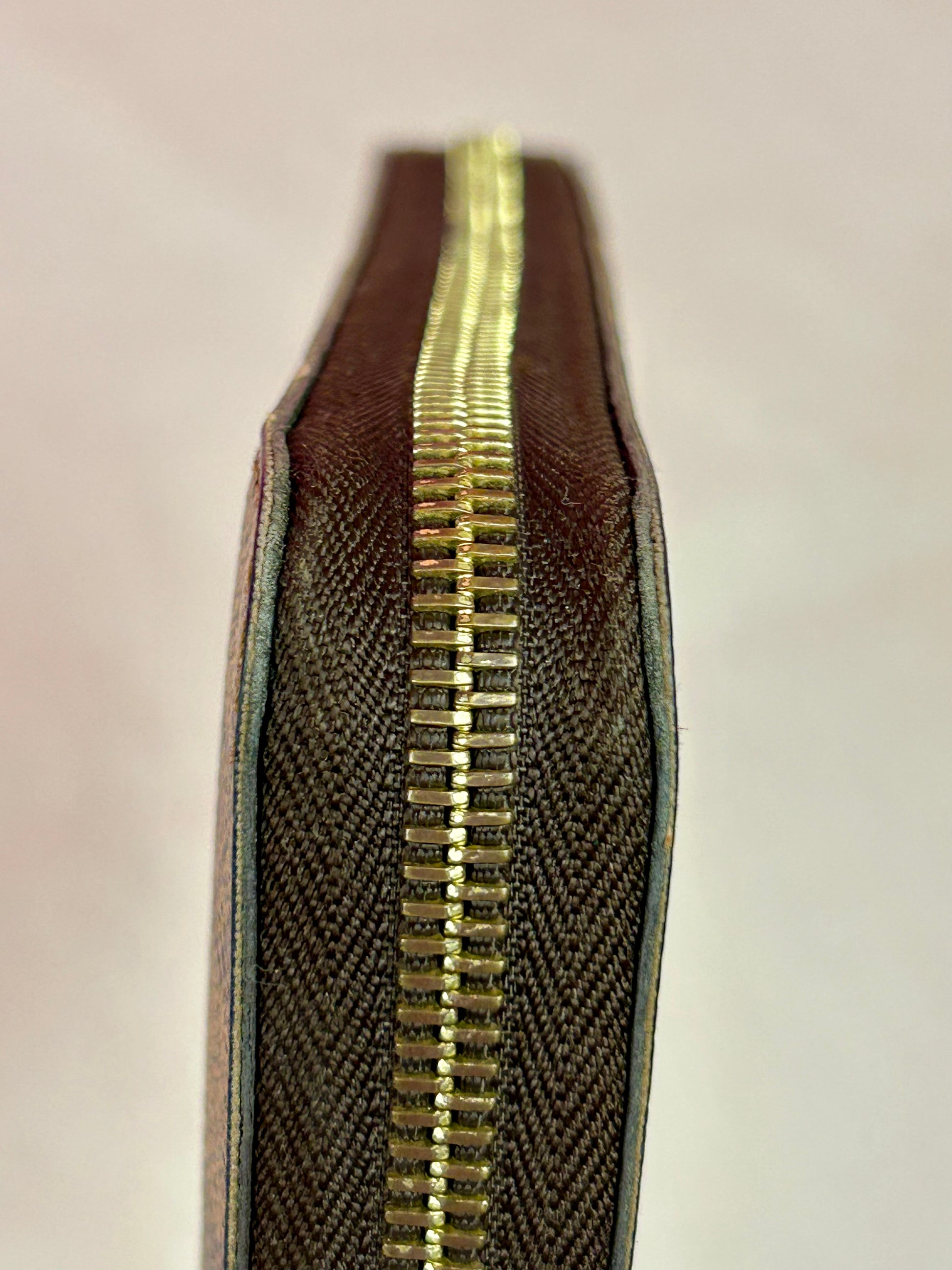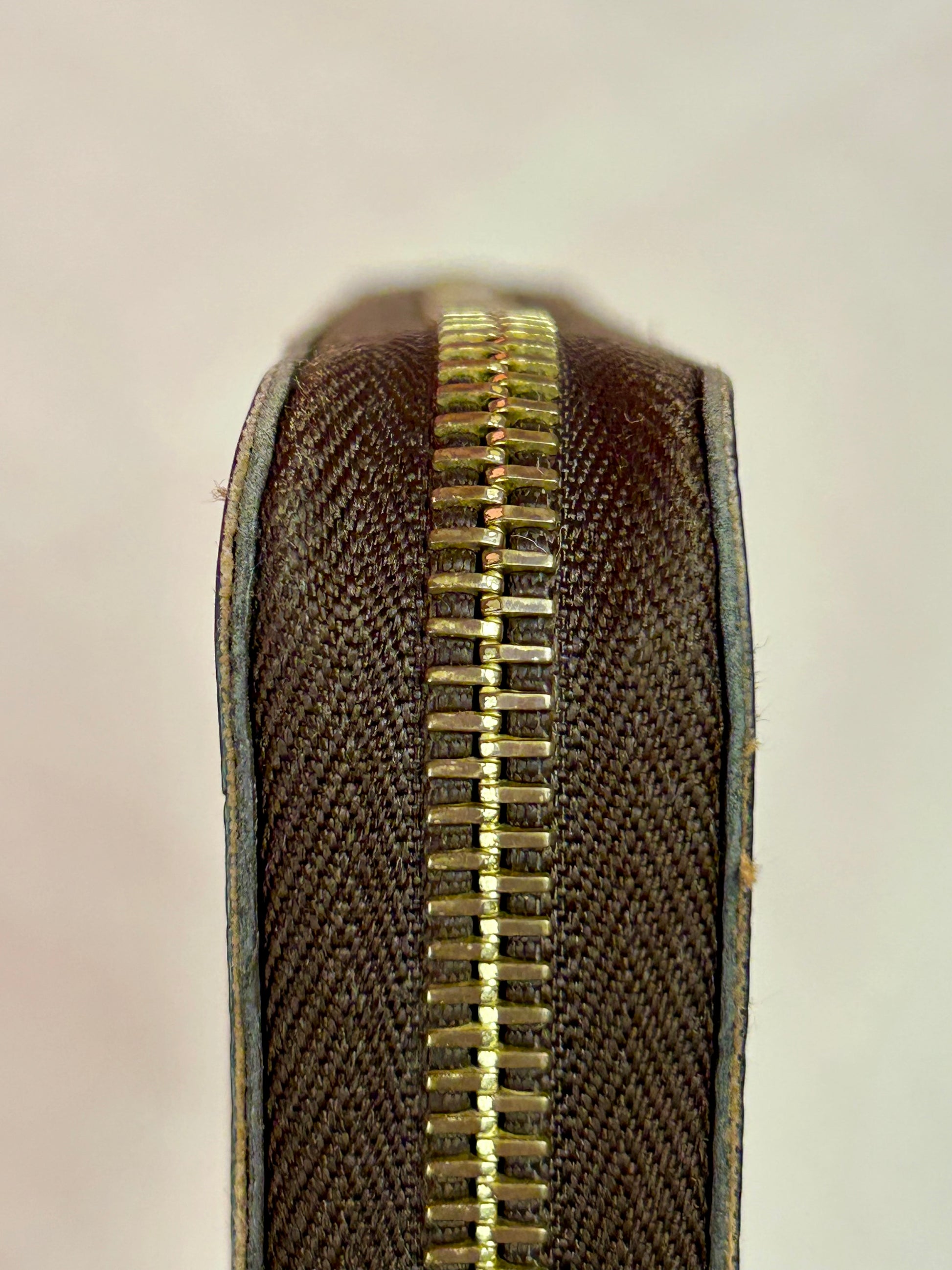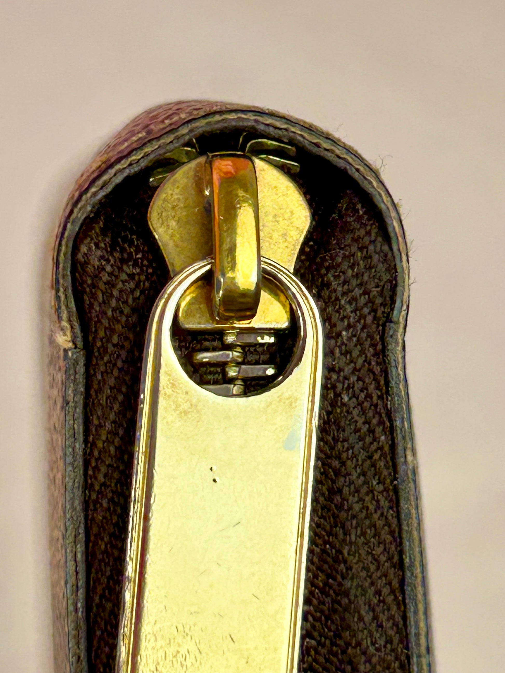 💜 Description: Canvas: Bright and clear canvas with no cracks. Some pulled thread along the sides. Exterior and and interior zippers work properly. Interior is clean, some peeling in the coin compartment. 8 card slots, 3 slip compartments, and one zippered coin compartment.